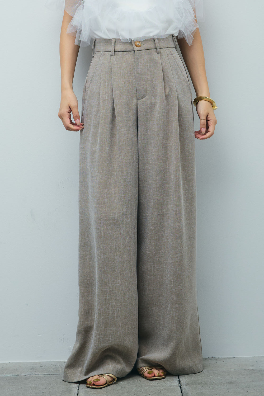[予約]サマースラブツイードタック入りワイドパンツ