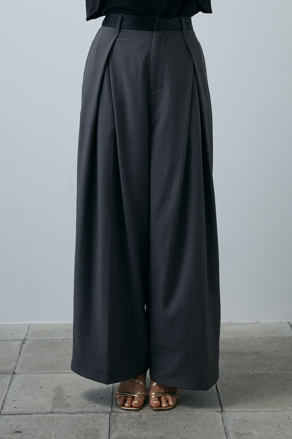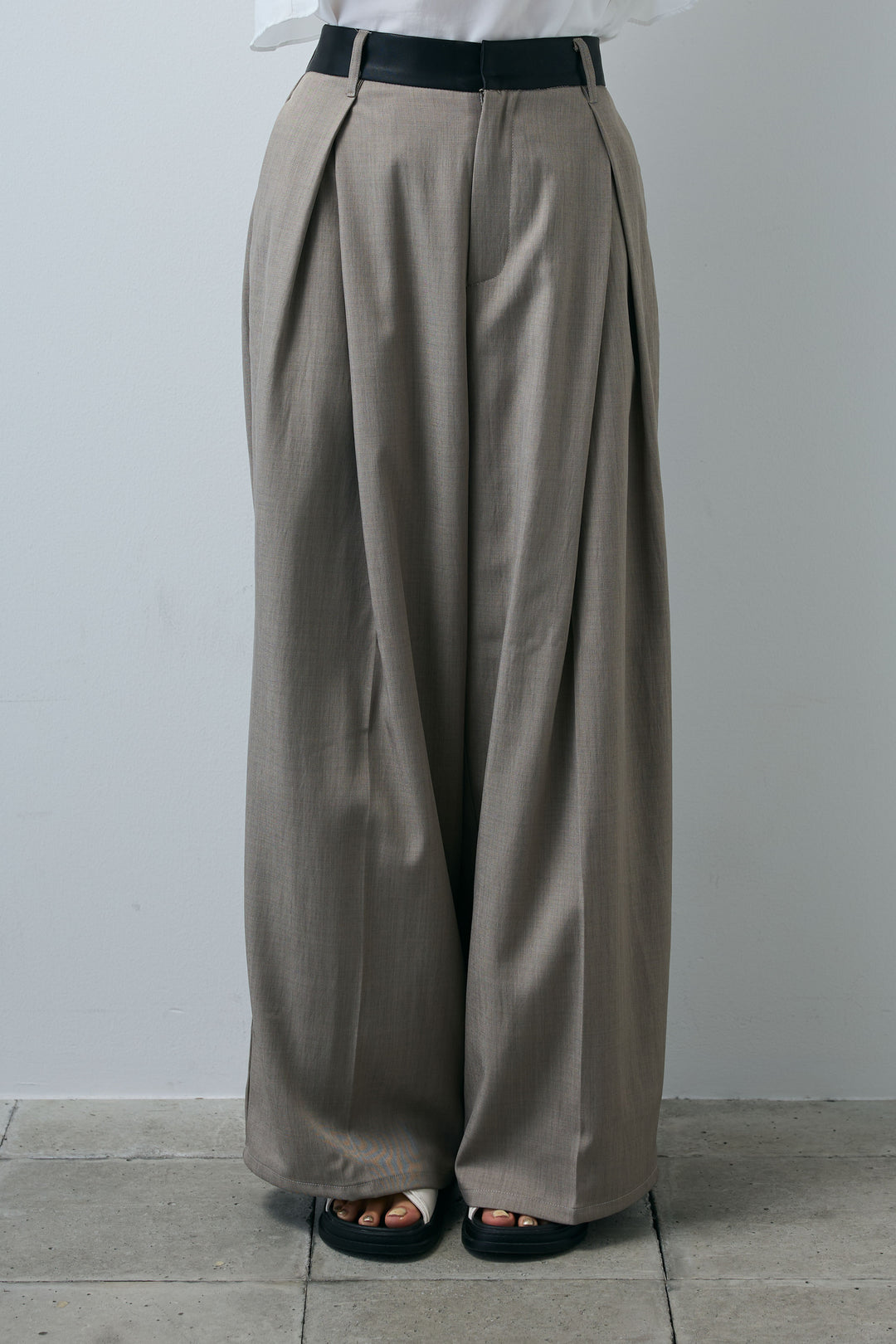 [予約]フェイクレザーベルトセンタータックパンツ