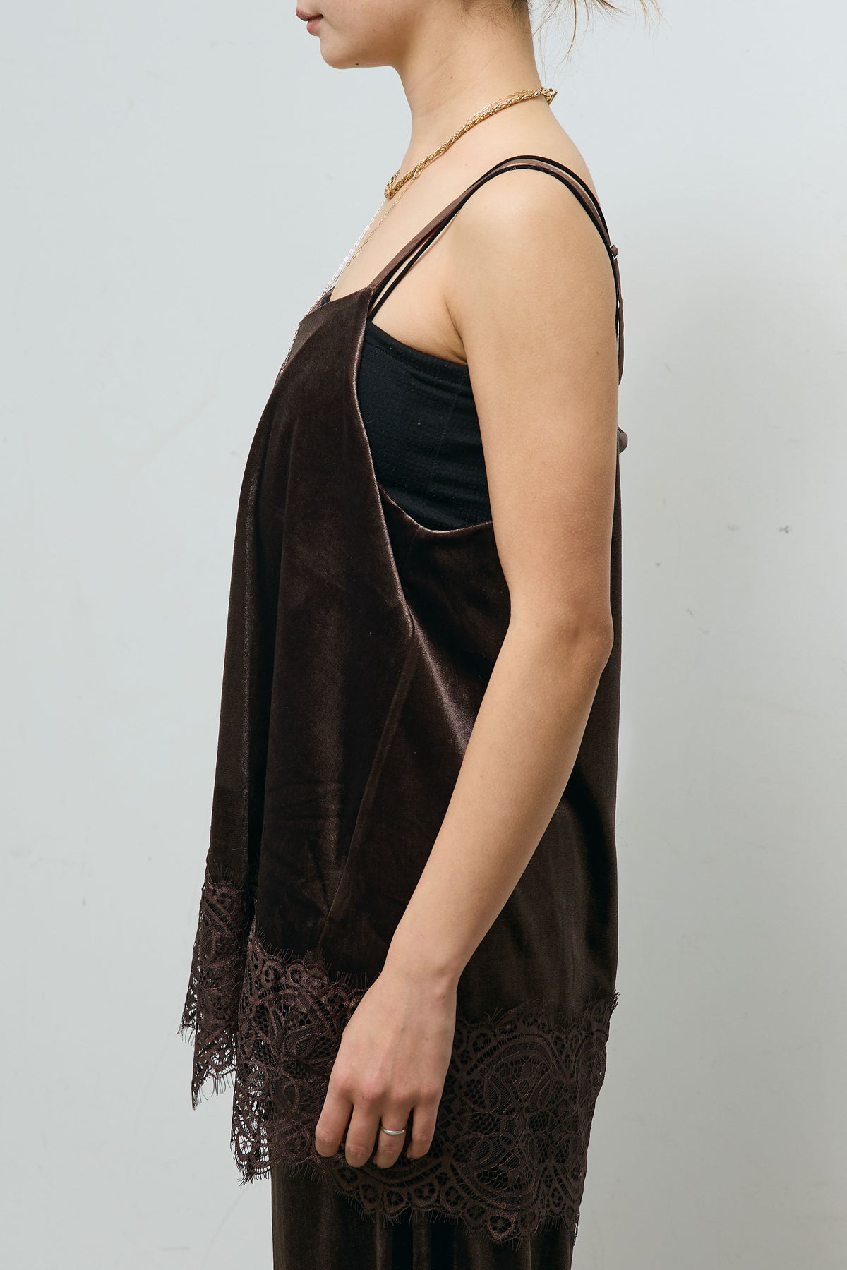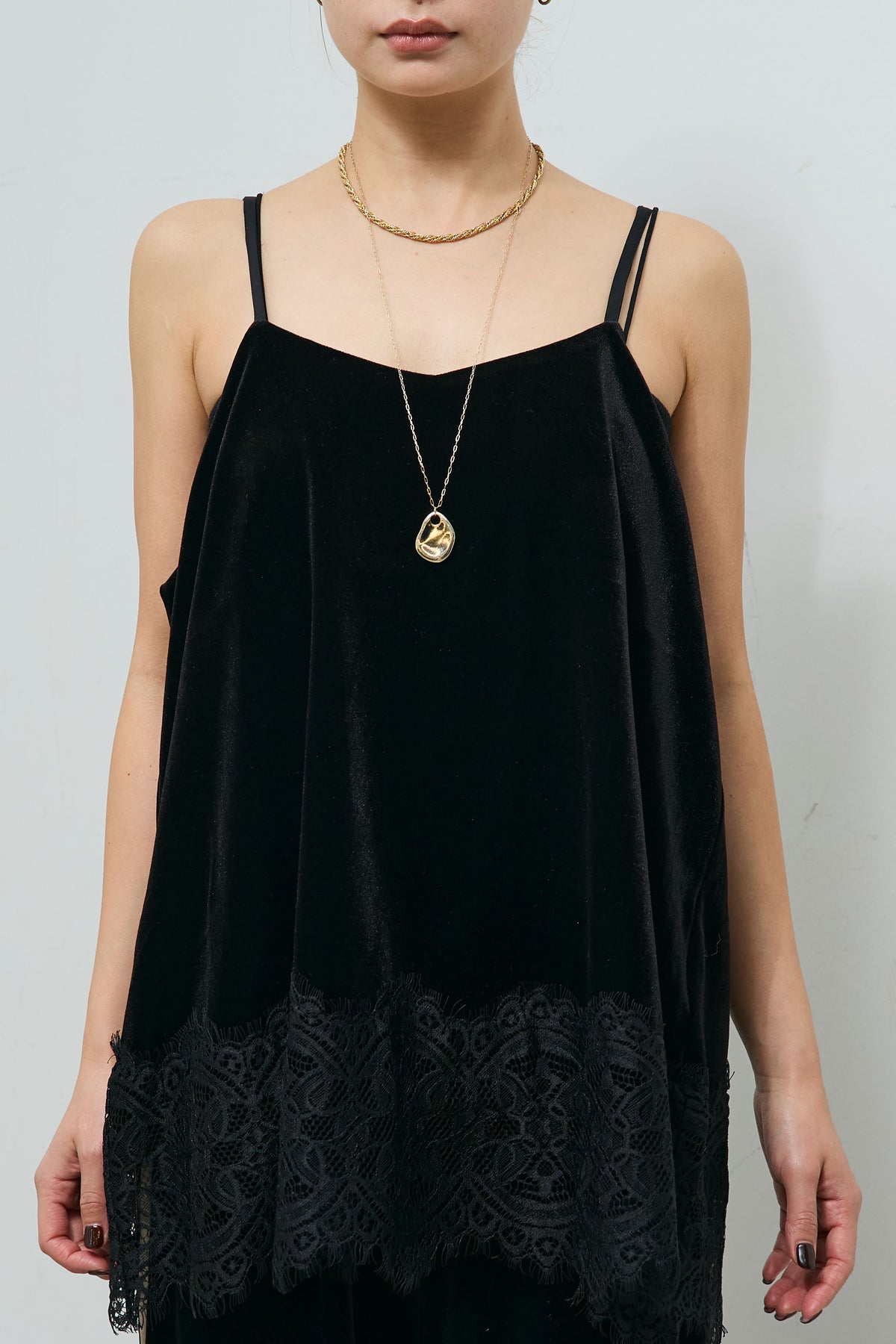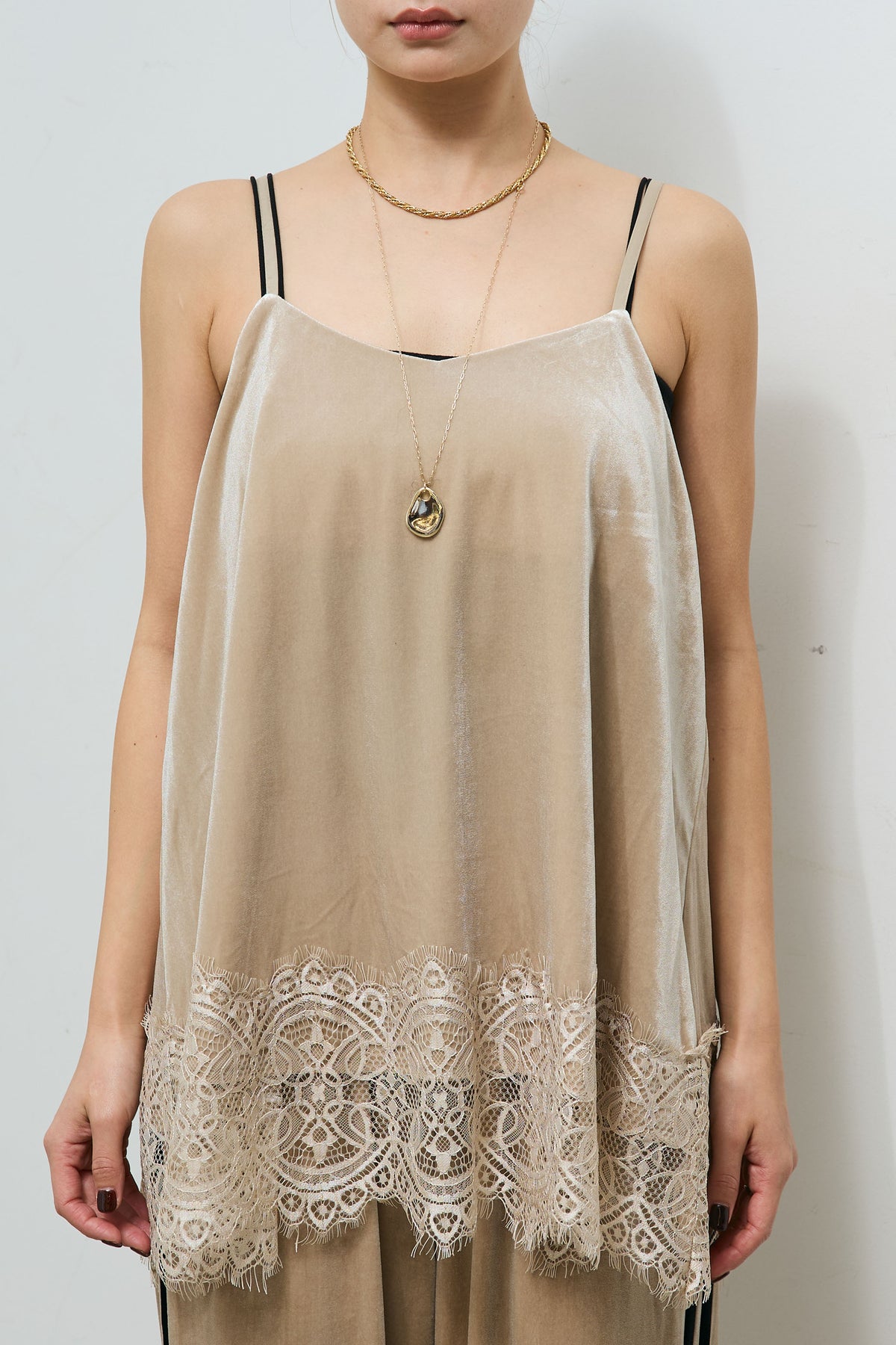 レース付きベロアキャミ