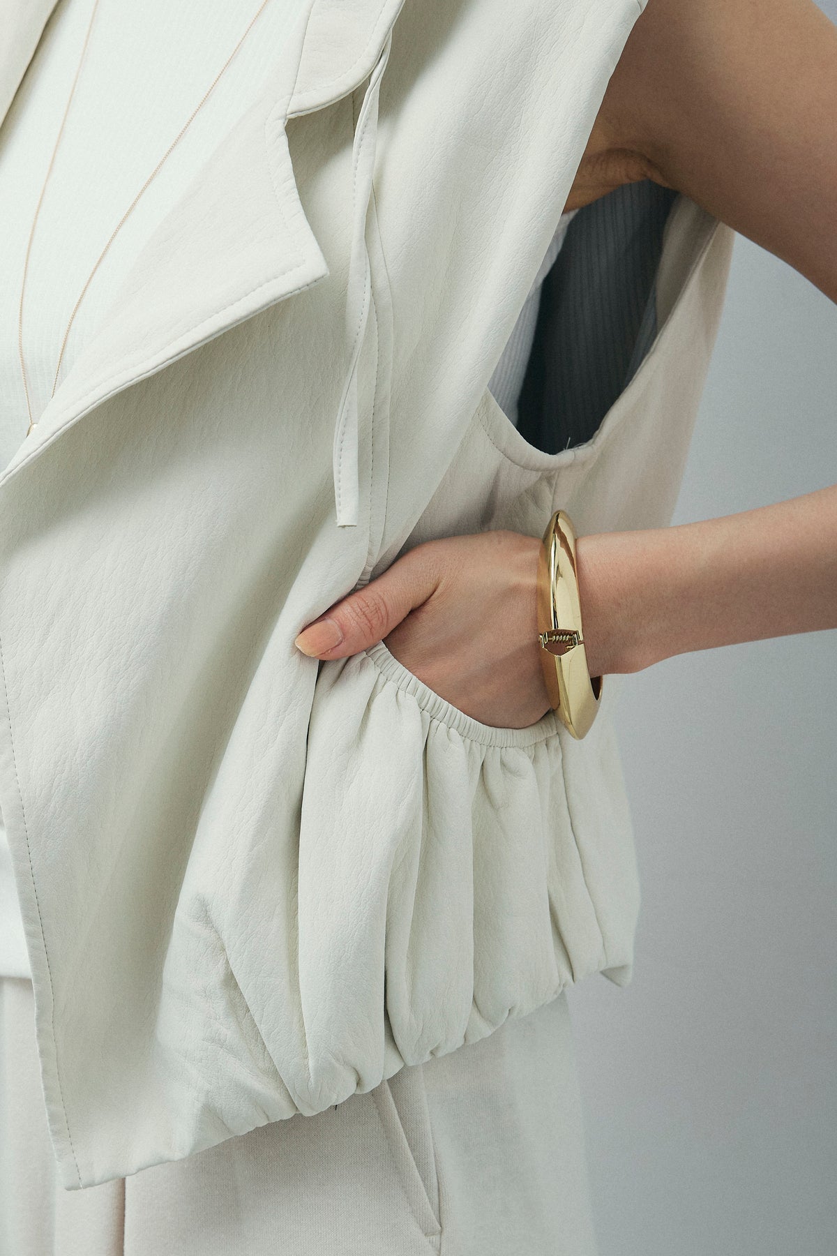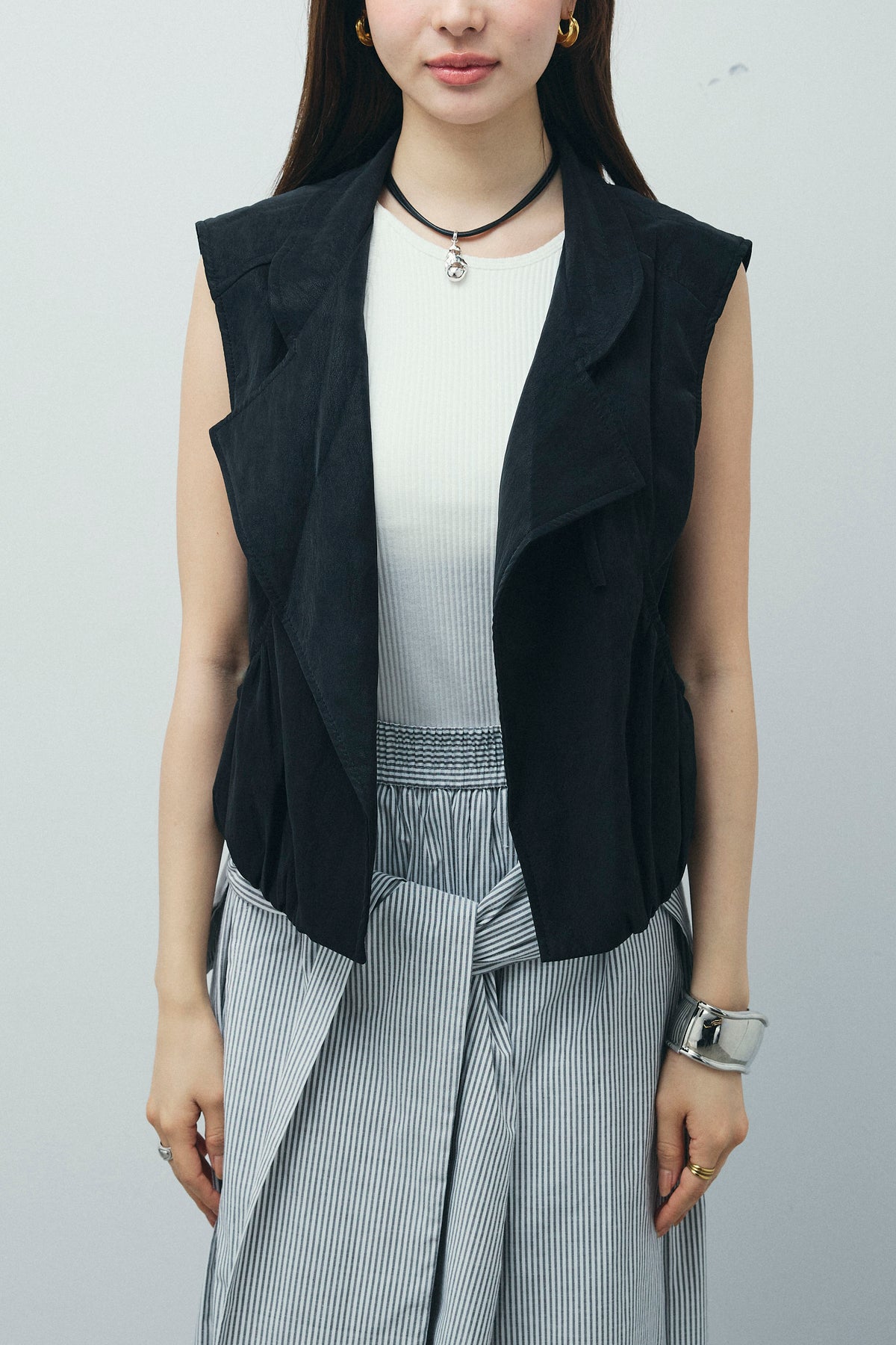 フェイクスウェードショートベストは、上品な質感とエッジの効いたデザインが魅力のアイテムです。シンプルでありながら、個性を引き立てるショート丈のベストは、どんなコーディネートにもアクセントを加えることができます。ドレープ感のあるシルエットと、肩周りの立体感が、スタイルを引き締めつつ女性らしさを演出します。 軽やかな素材で、春から秋にかけて活躍すること間違いなし。タンクトップやブラウスとの相性も良く、シンプルなコーディネートを一段と引き立てます。フェイクスウェードの高級感がありながらも、環境に優しい素材を使用しているのもポイントです。 スタイリッシュでエフォートレスな魅力を持つこのベストは、デイリーユースに最適です。