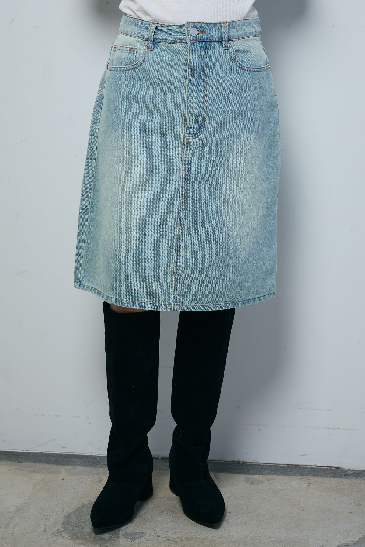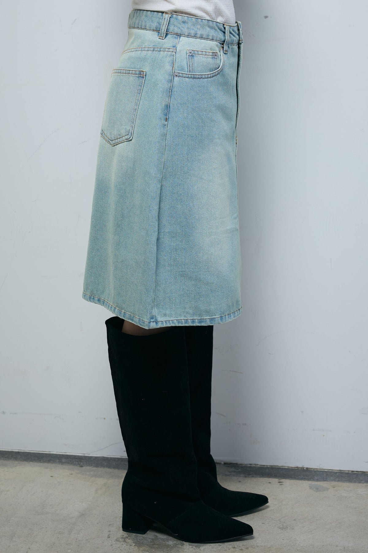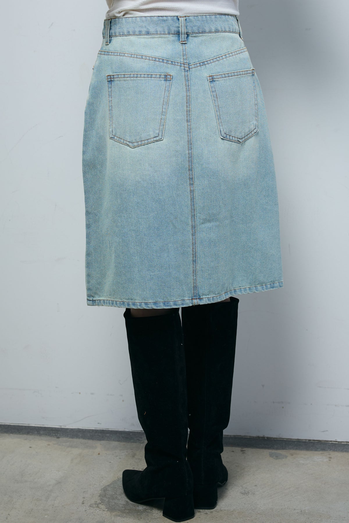 [予約]ボックスデニム膝丈SK