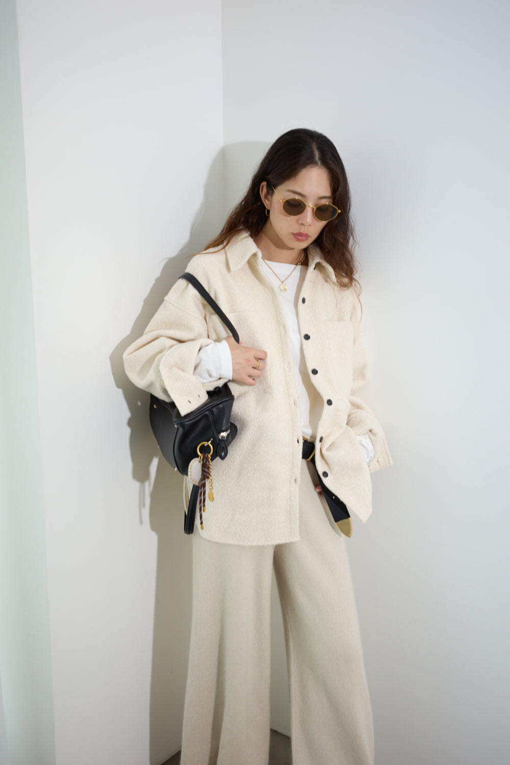 [予約]フェイクレザーベルト付きワイドタックパンツ