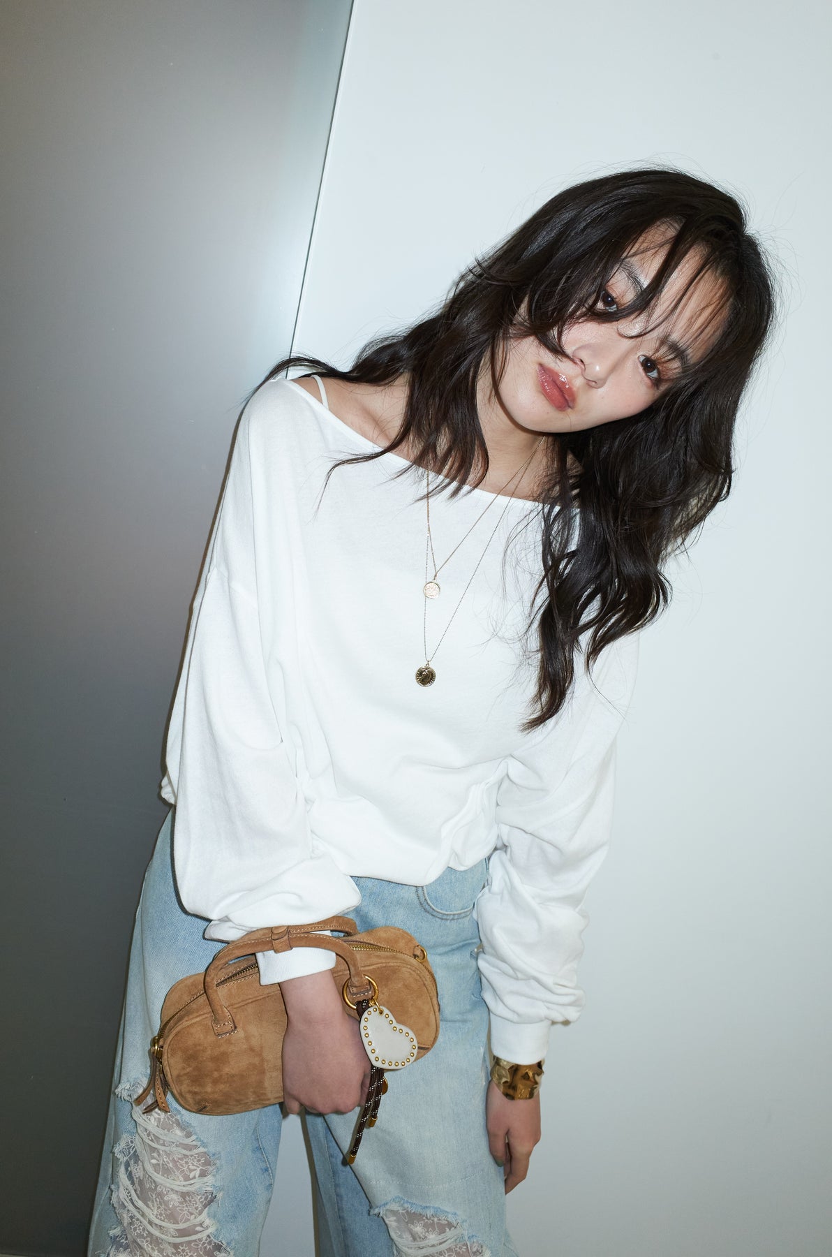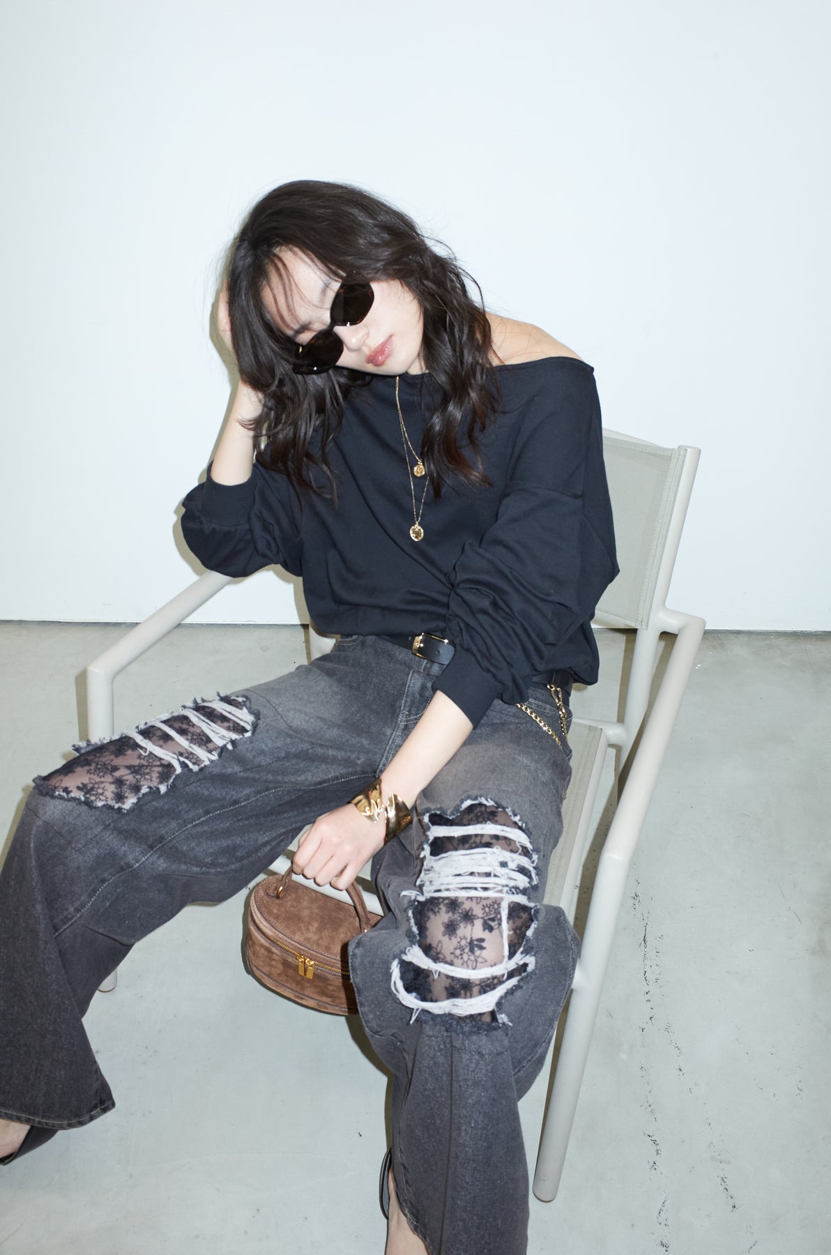 [予約]シアーオフショルプルオーバーを含んだコーデセット商品を探す↓