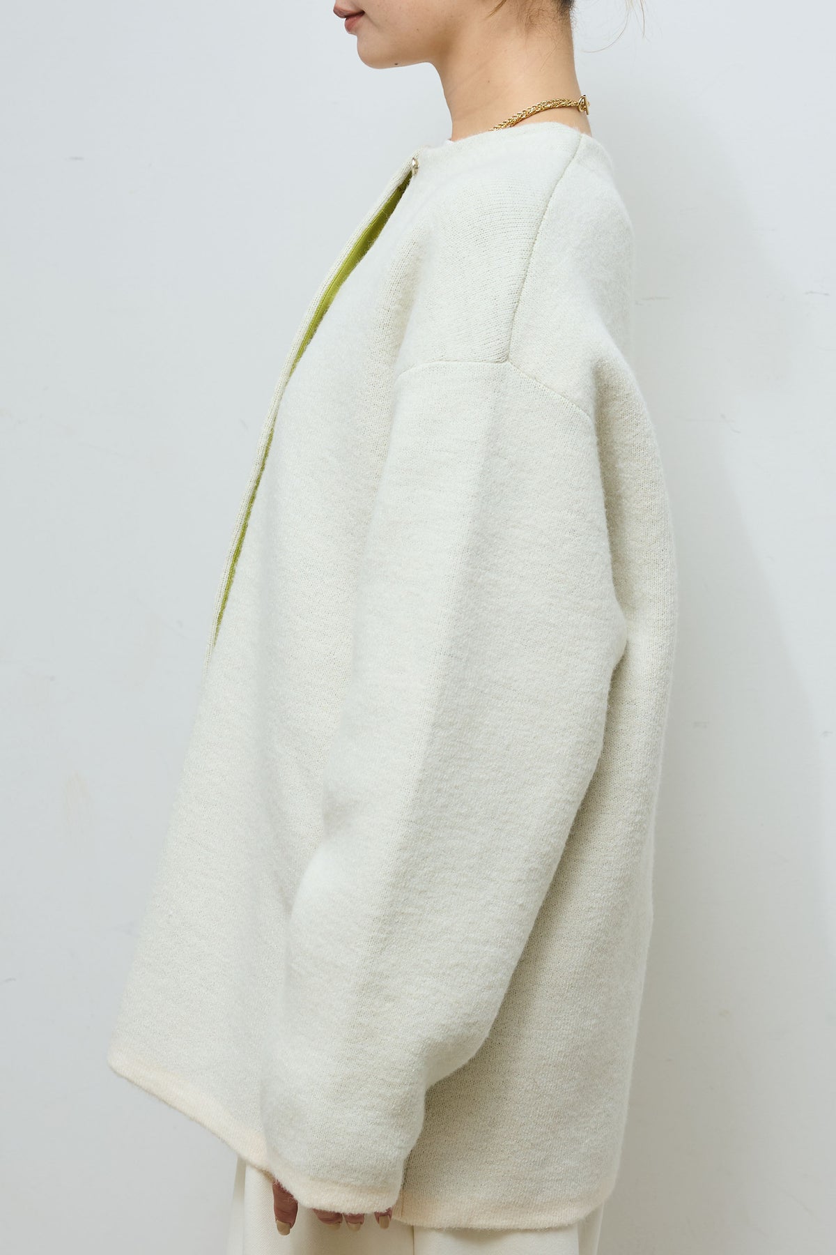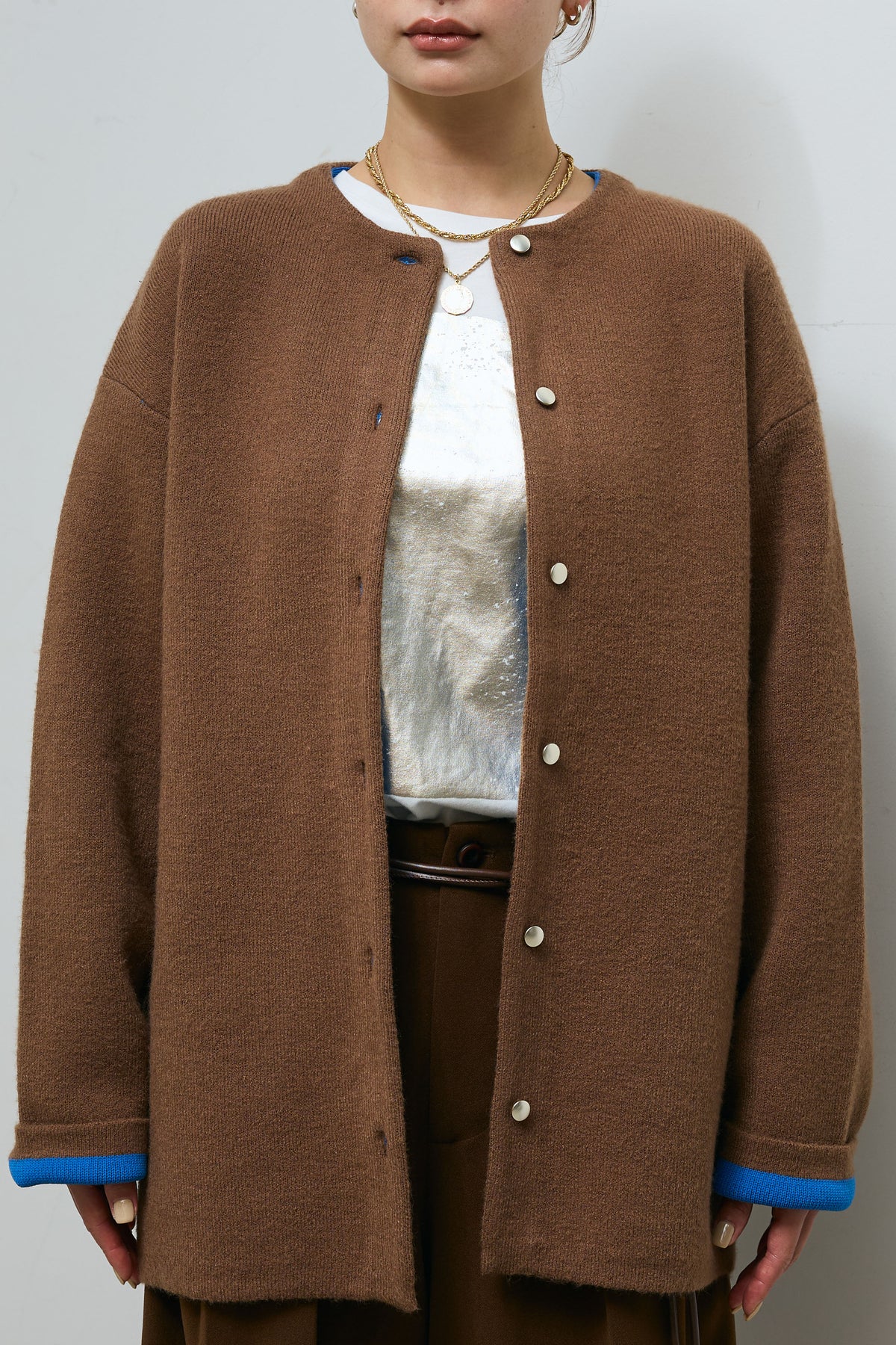 柔らかな風合いが魅力のダブルフェイスニットコート。表と裏で異なるカラーを組み合わせた配色デザインが、シンプルながら印象的な一枚です。軽やかな着心地で、カーディガン感覚でも羽織れる万能アイテム。程よいゆとりのあるシルエットが抜け感をプラスし、デイリーにもきれいめにも活躍します。