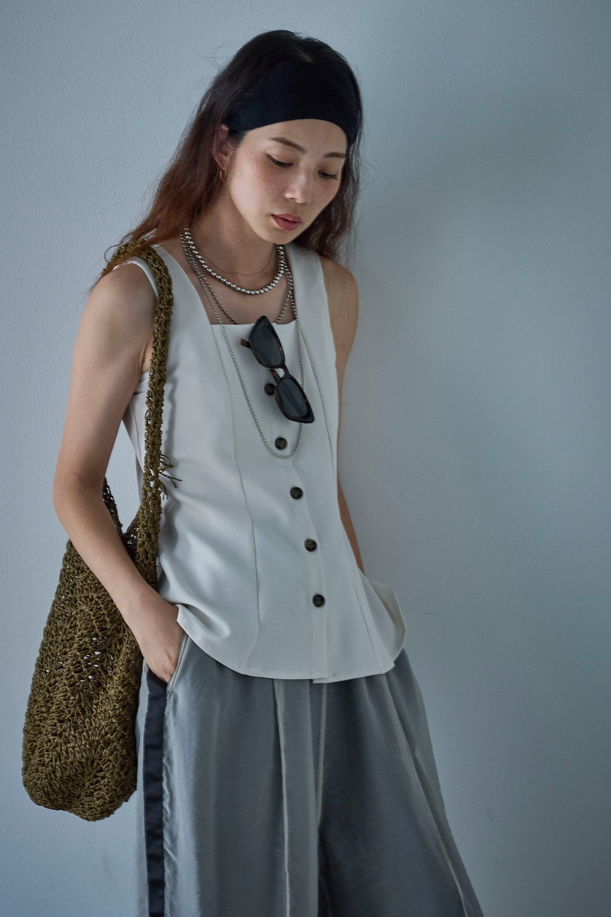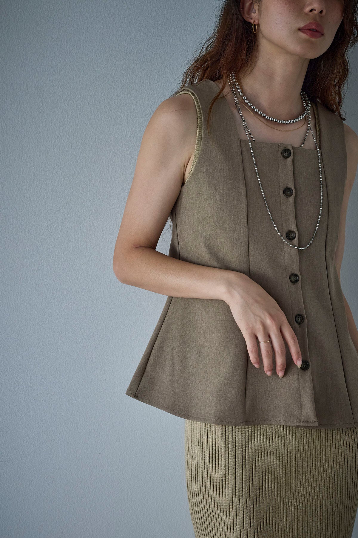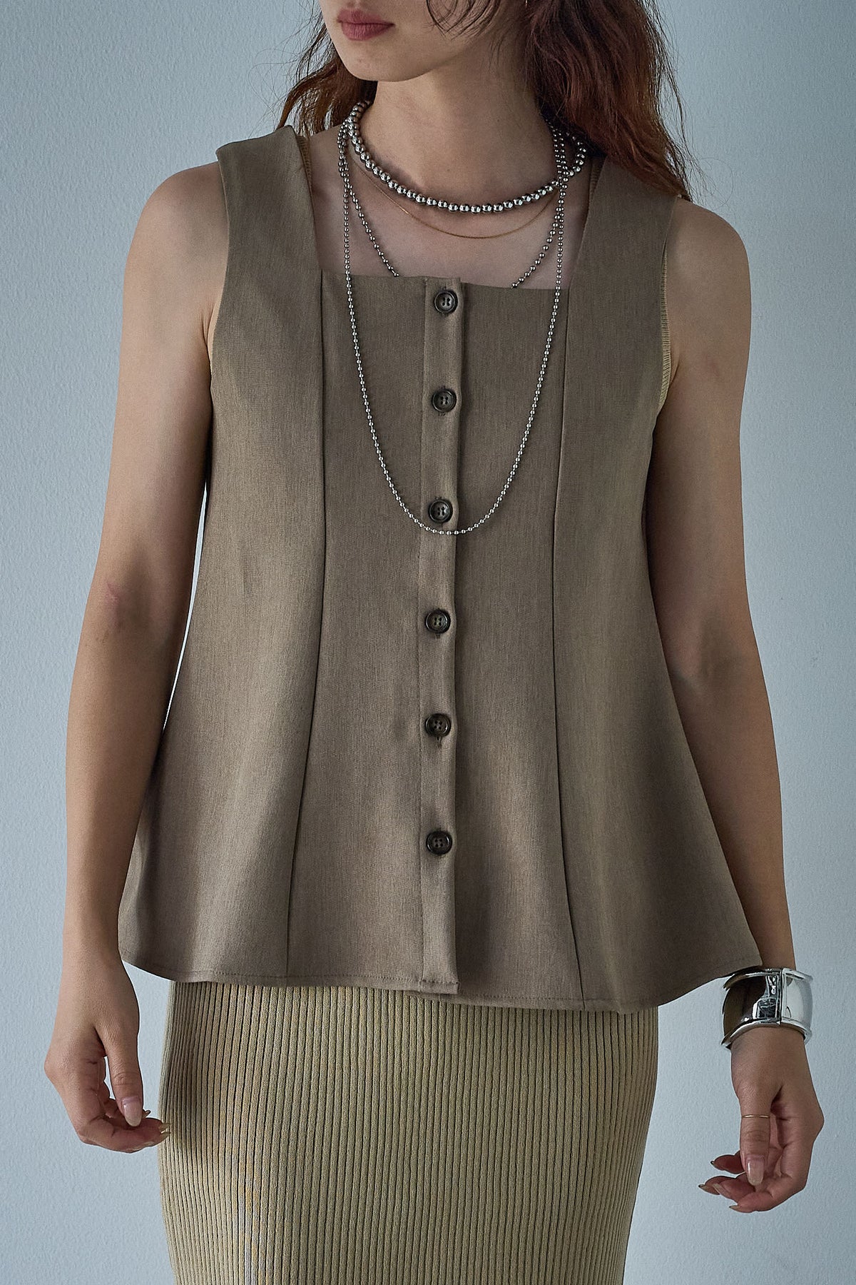 [予約]ノースリーブフロントボタントップスを含んだコーデセット商品を探す↓