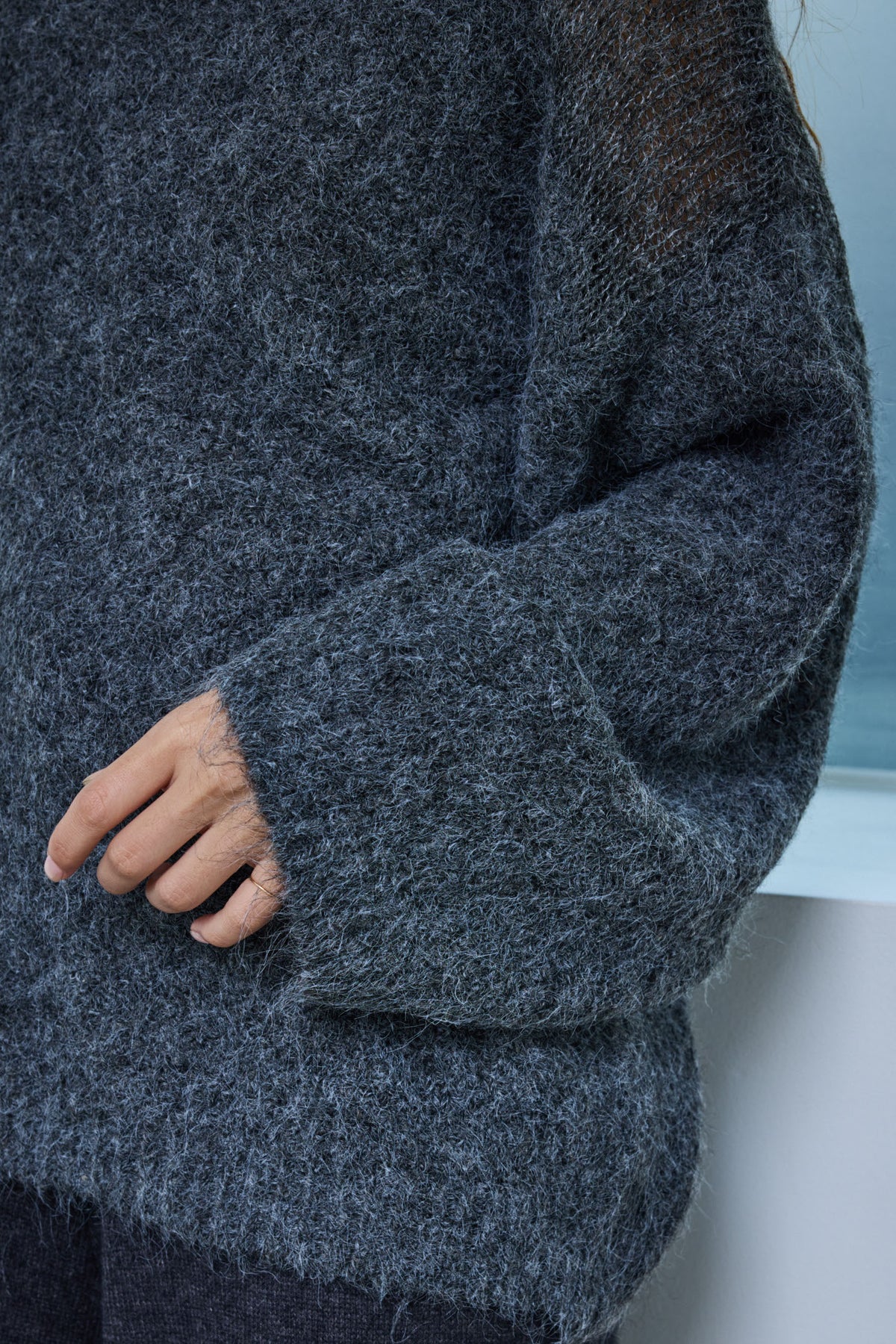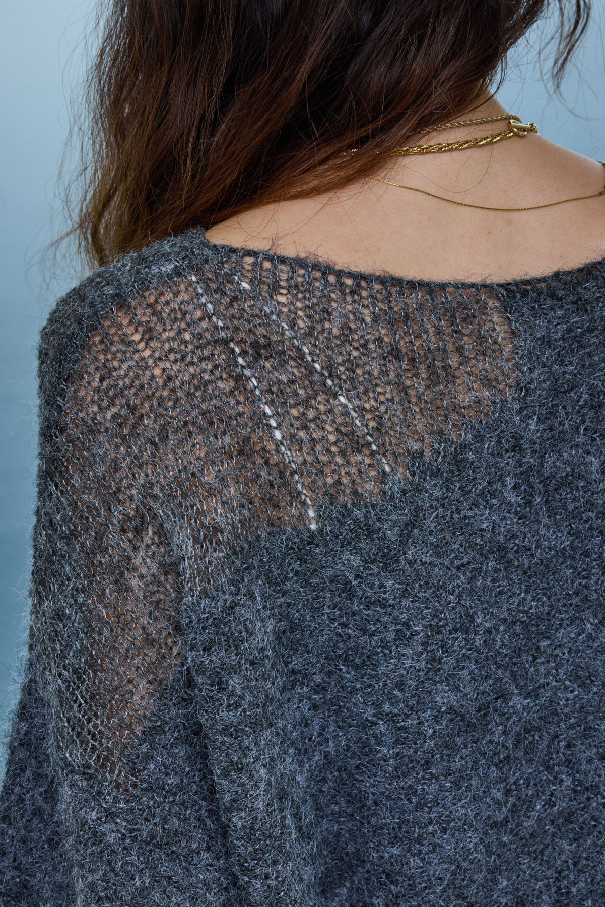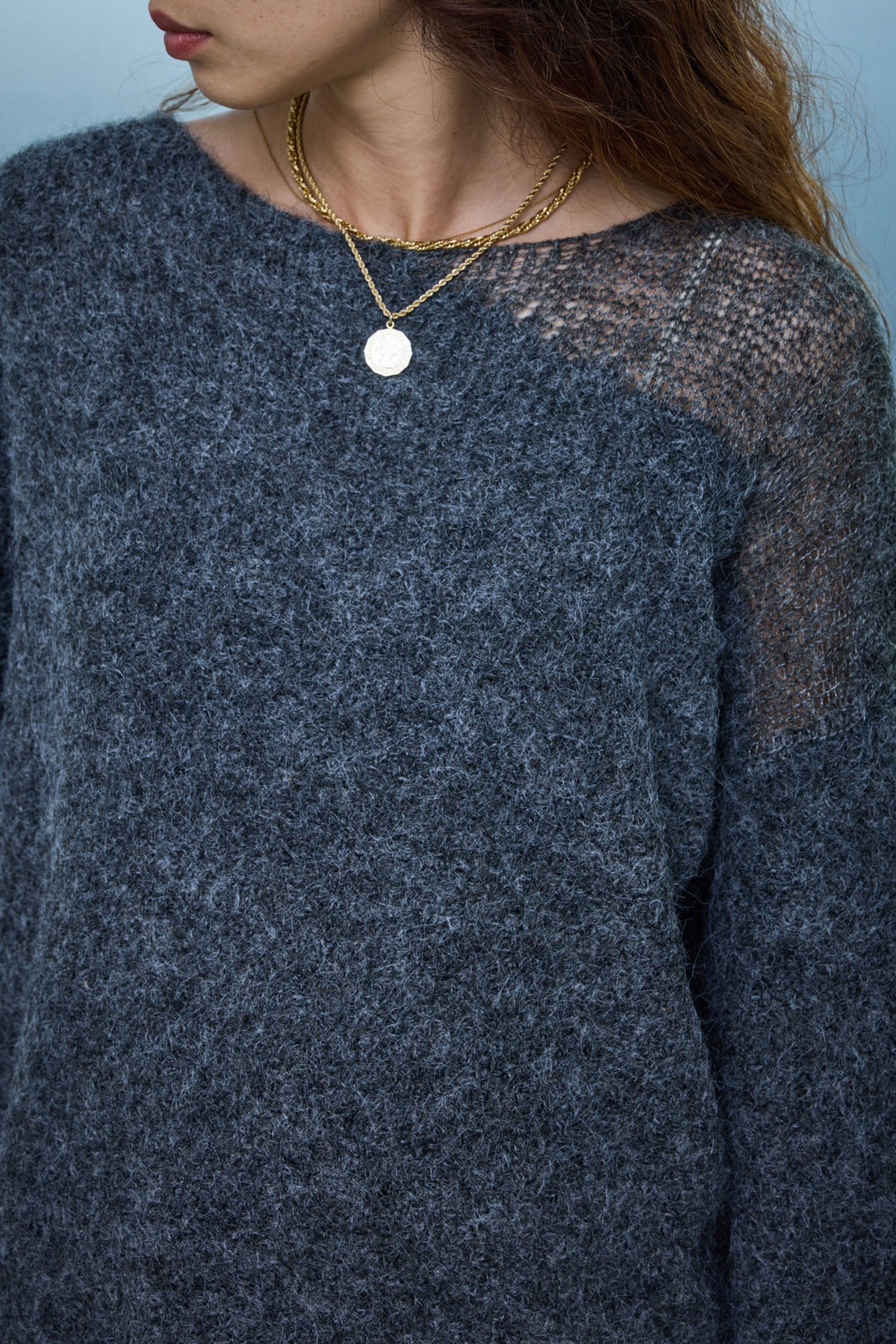 片側に抜け感を持たせたデザインが魅力のアシンメトリーシアーニット。ふんわりとした質感と軽やかな透け感がシーズンムードを高めます。リラックス感のあるシルエットで、インナー次第で印象を変えられるのもポイント。デニムやスカートと合わせて、ナチュラルな抜け感を楽しめる一枚です。