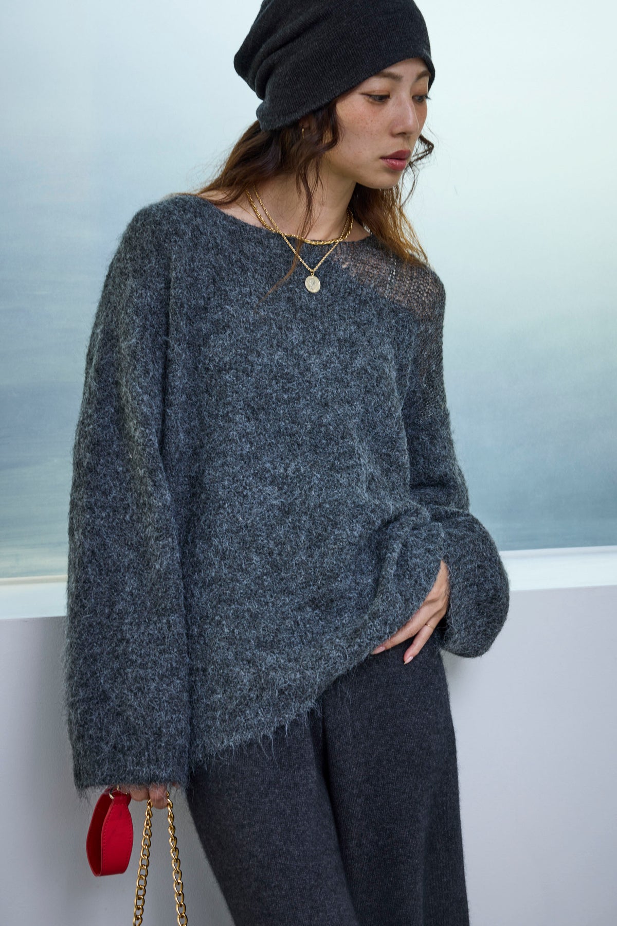 [予約]アシンメトリーシアーニットを含んだコーデセット商品を探す↓
