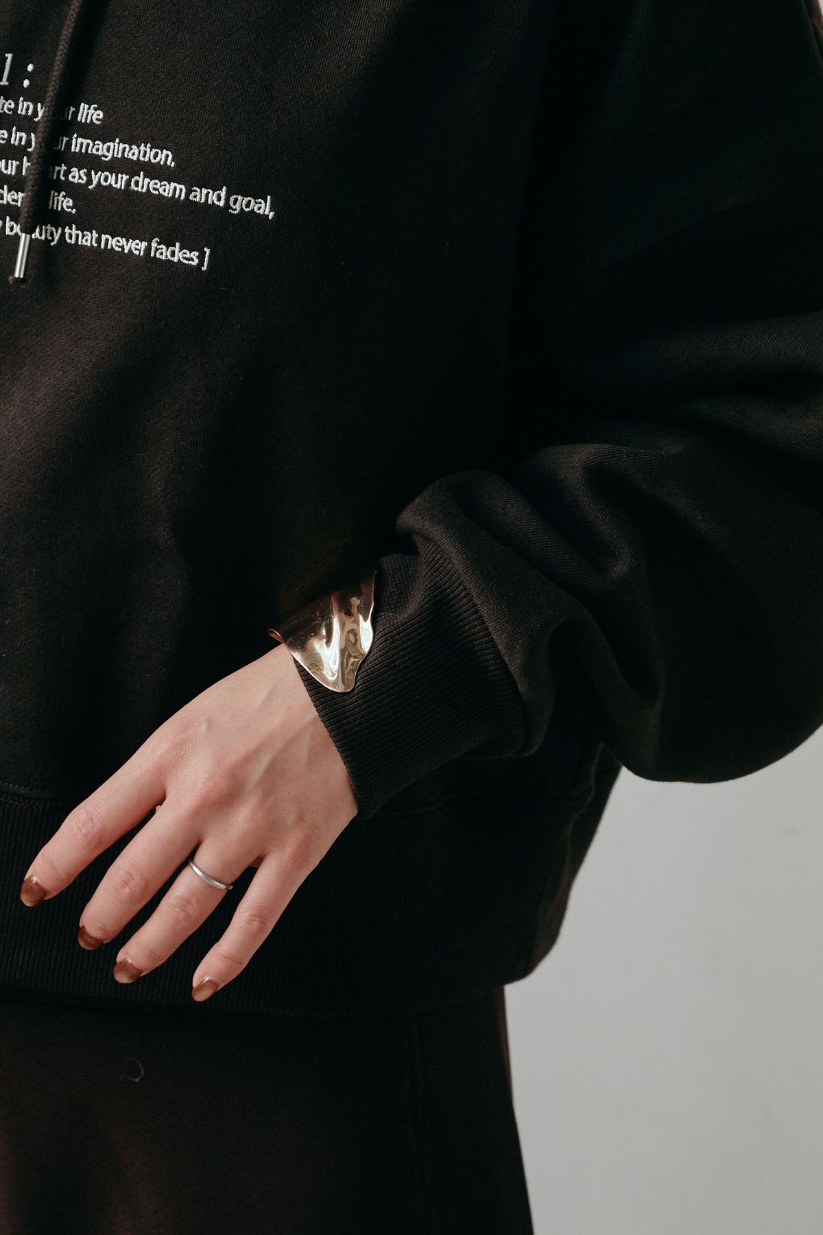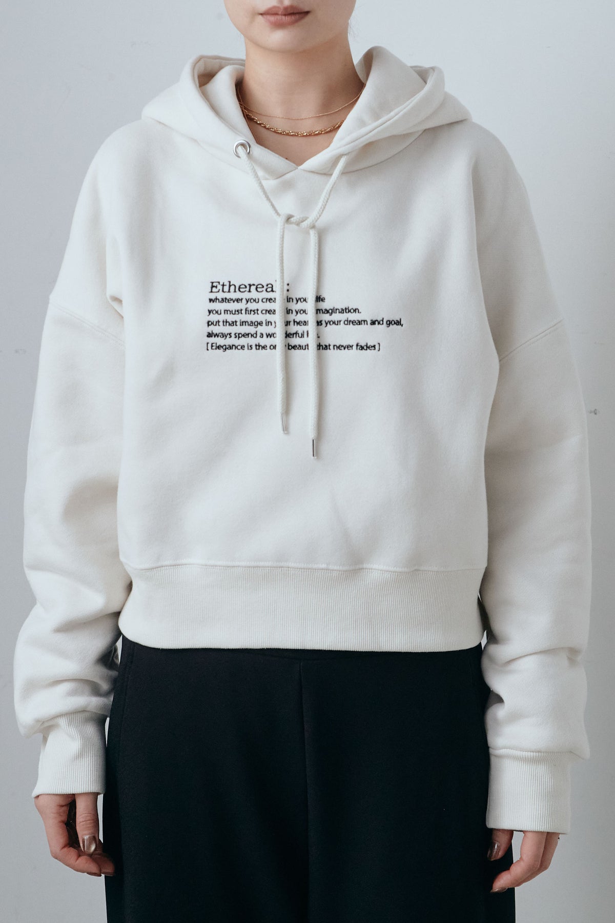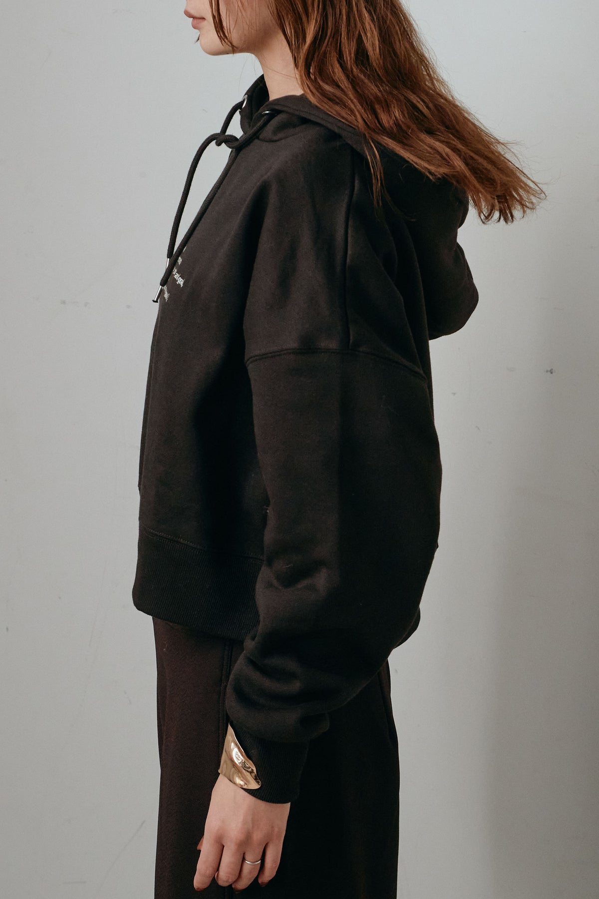 フロントに配したミニレタリングがさりげないアクセントになるフーディ。程よくゆとりのあるシルエットで、レイヤードもしやすいバランスに仕上げました。柔らかな裏毛素材が心地よく、長時間の着用でも快適。主張しすぎないデザインで、パンツやスカート問わず合わせやすく、デイリーに活躍する一枚です。