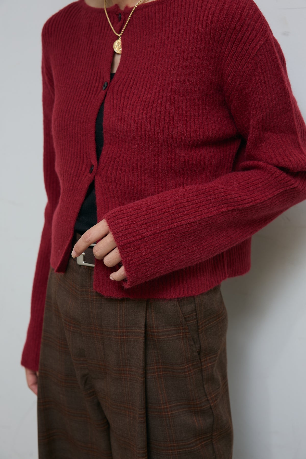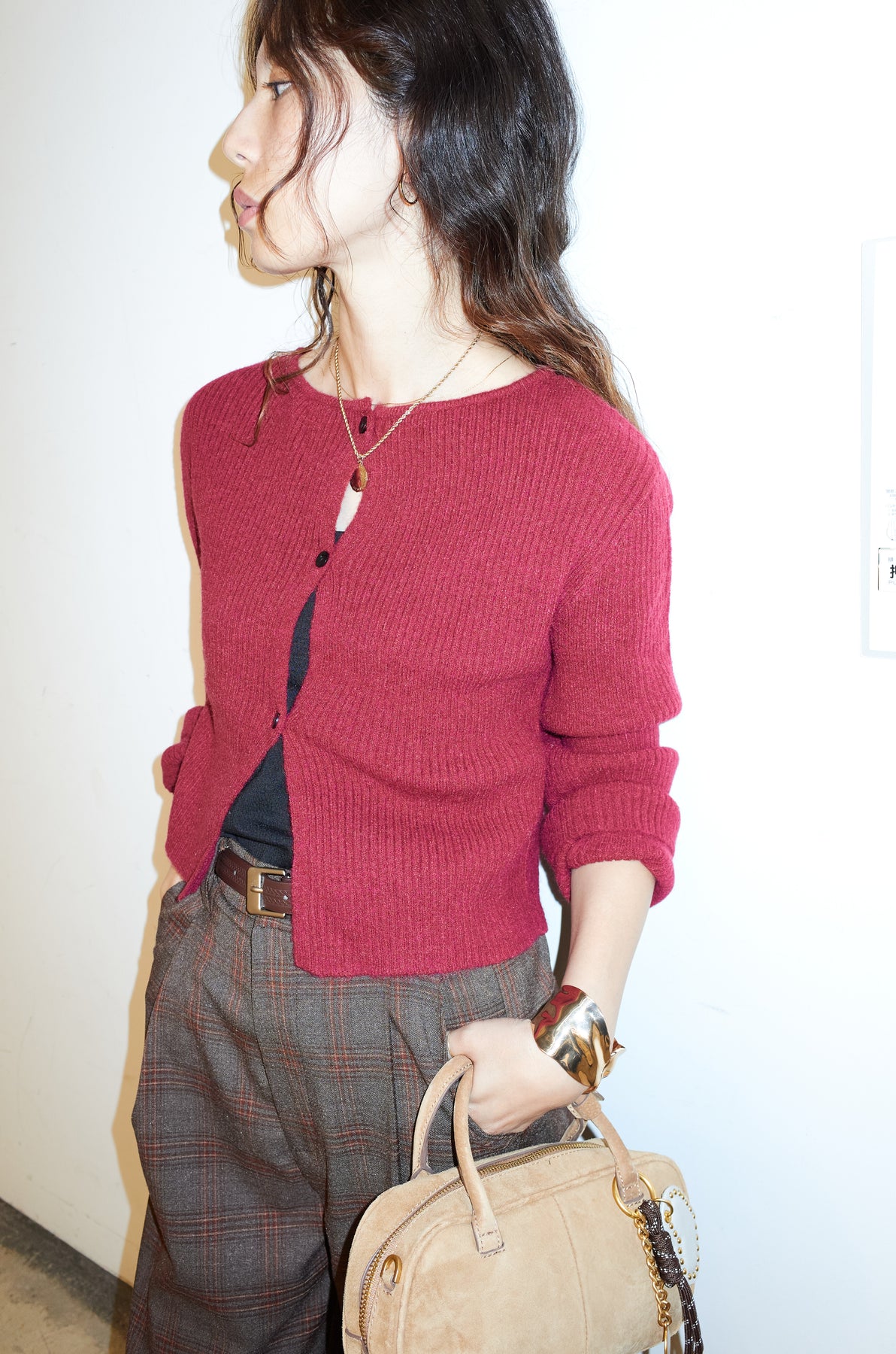 シンプルながらも女性らしいシルエットを演出するコンパクトカーディガン。短めの丈感がウエスト位置を高く見せ、スタイルアップ効果も抜群です。さらりと羽織るだけでこなれ感が生まれ、ボタンを留めてトップス風に着ても◎。デニムでカジュアルに、スカートでフェミニンにと、幅広いスタイリングにマッチします。シーズンレスで着回しが効く、ワードローブに取り入れたい万能アイテムです。