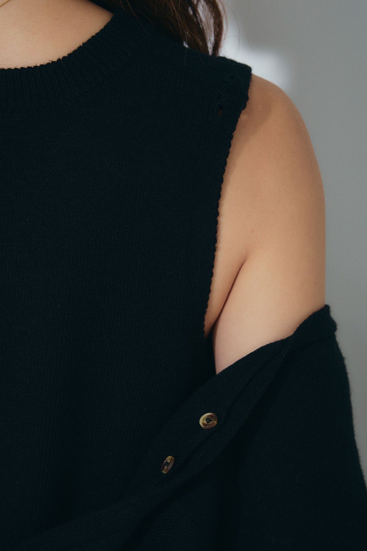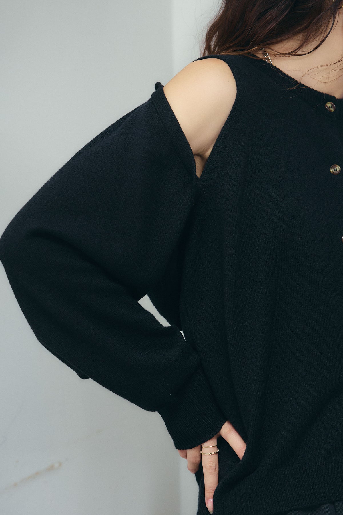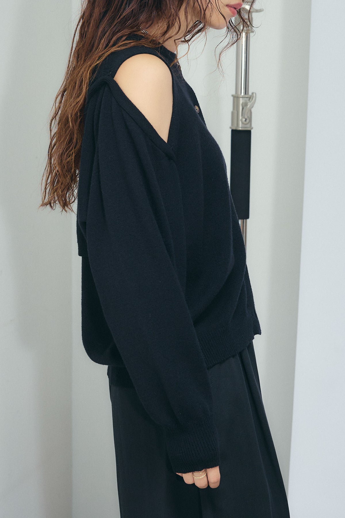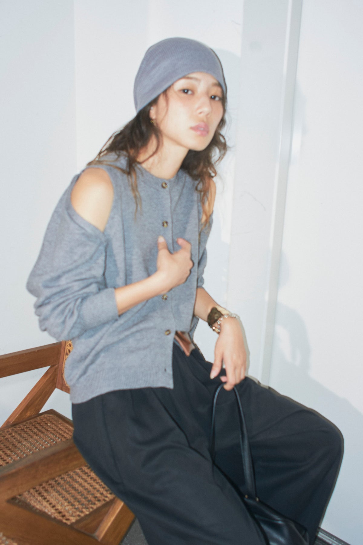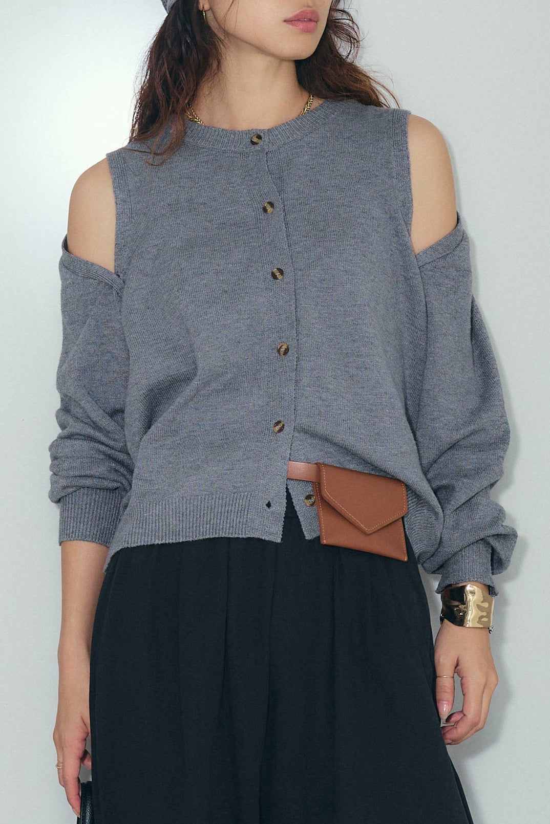 2way仕様で着こなしの幅が広がるニットカーディガン。ショルダー部分のスリットデザインがさりげない抜け感を演出し、ボタンを留めればプルオーバー風、開ければ羽織としても活躍します。程よい厚みの柔らかなニット素材で、シーズンを通して快適な着心地。パンツやスカートはもちろん、ワンピースにも合わせやすく、デイリーからお出かけまで幅広く活用できる一枚です。