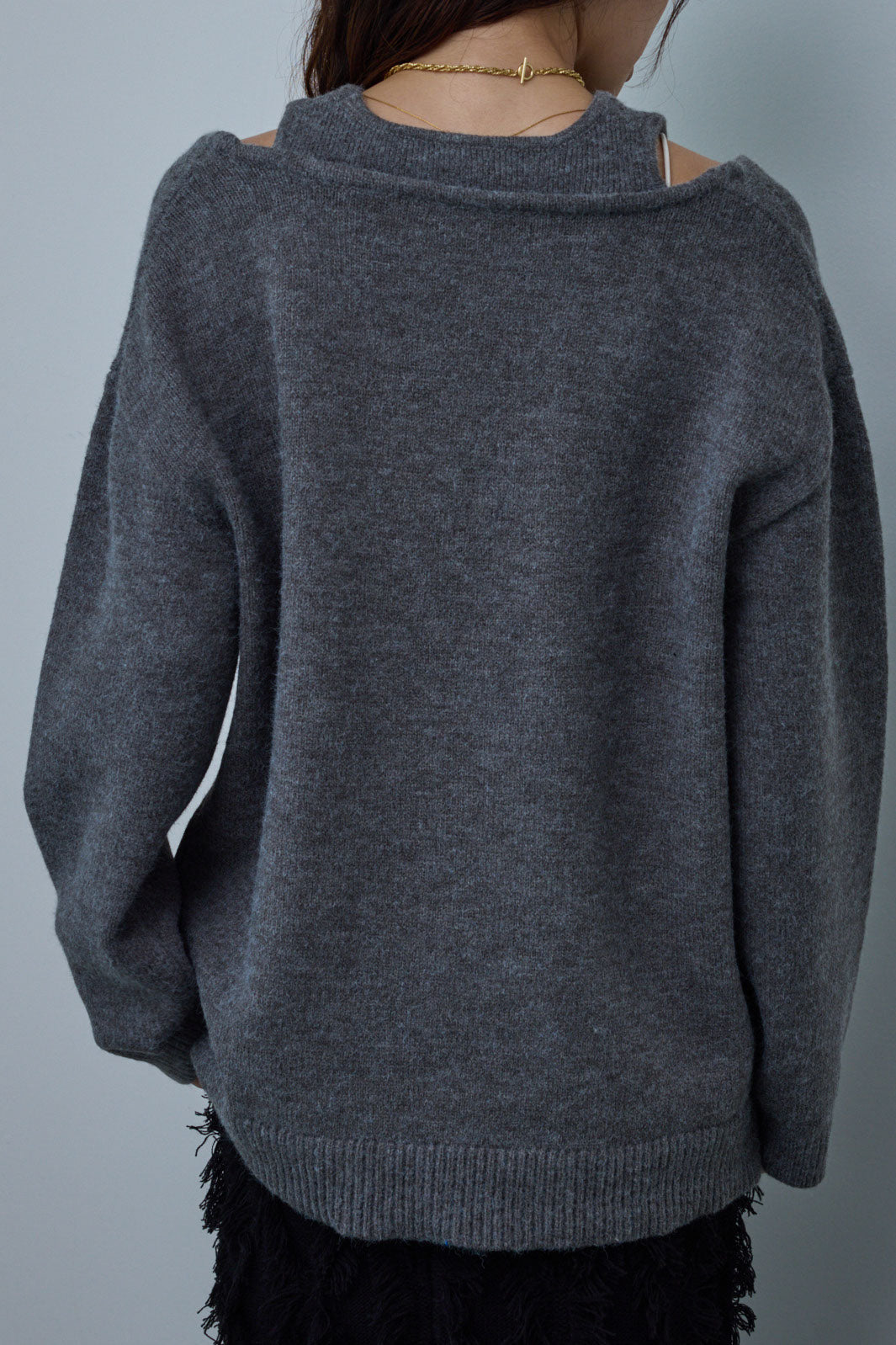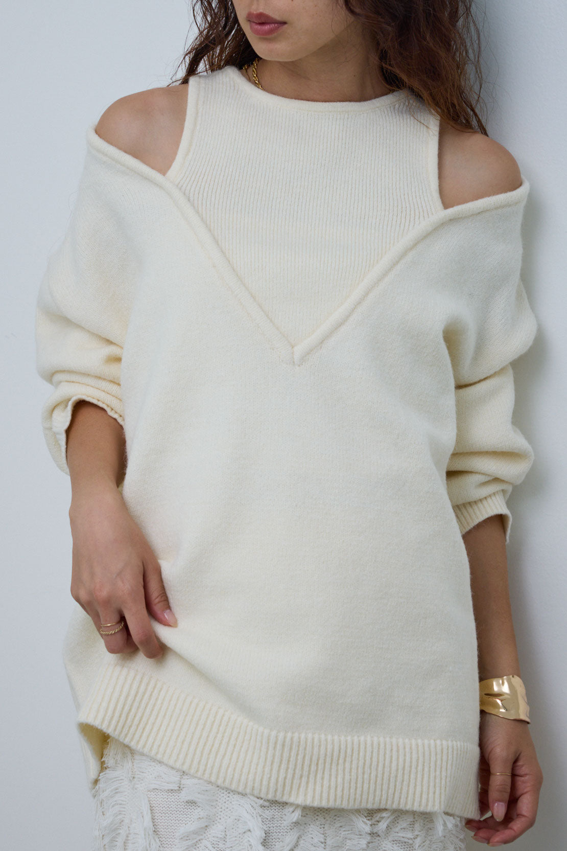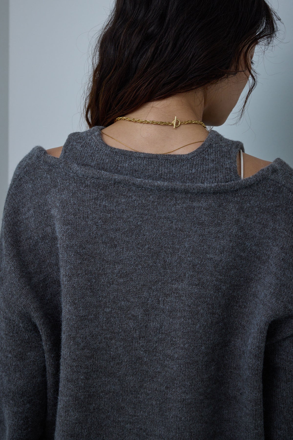 大胆なショルダースリットが目を惹くニットトップス。レイヤード風のデザインがトレンド感をプラスし、1枚で着映えするアイテムです。ゆったりとしたシルエットと柔らかな素材感で着心地も抜群。シンプルなボトムを合わせるだけでバランスよく仕上がり、デイリーコーデに程よい抜け感を与えてくれます。