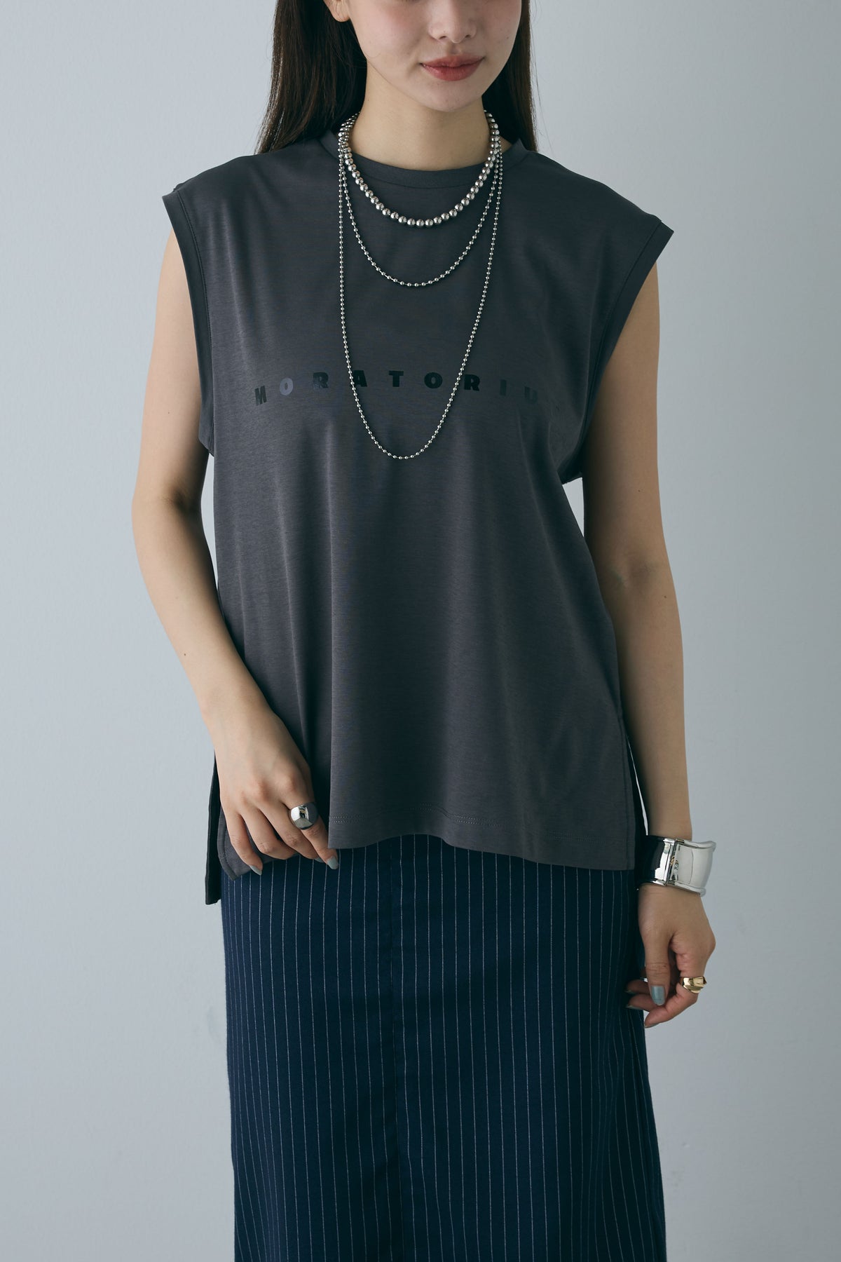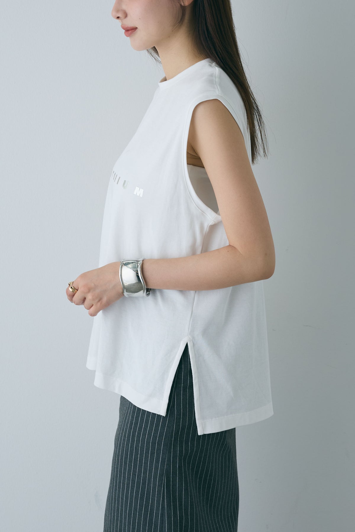 胸元にさりげなく輝くミニ箔ロゴがアクセントとなり、シンプルながら存在感のあるデザインに仕上げました。すっきりとしたシルエットと程よい丈感で、パンツやスカートともバランスよく合わせられます。季節を問わず、デイリーに活躍する一枚です。