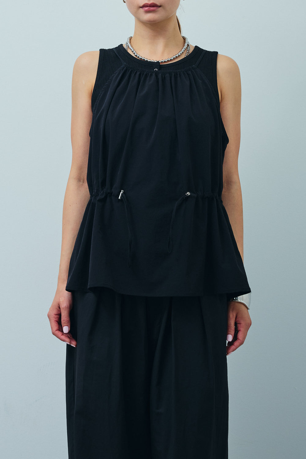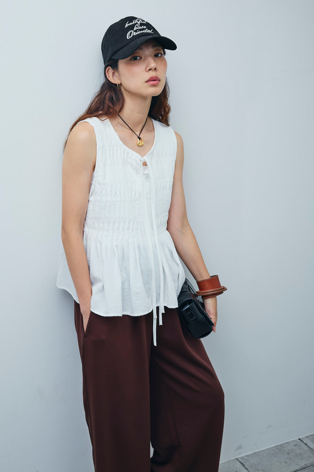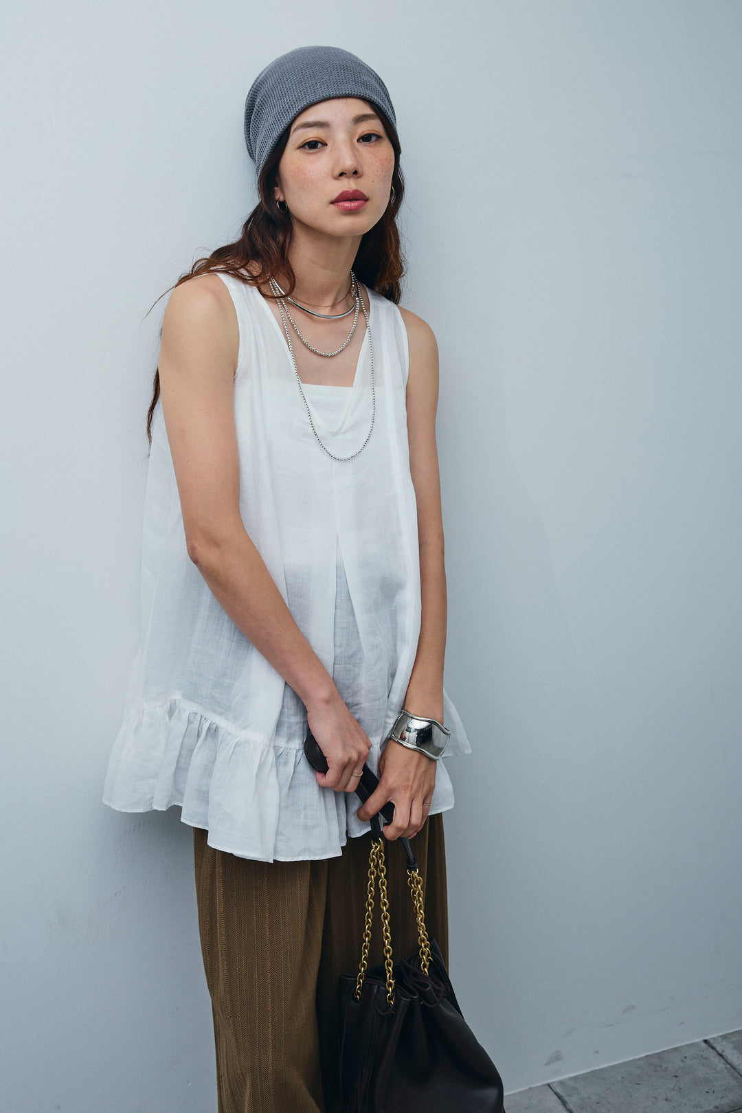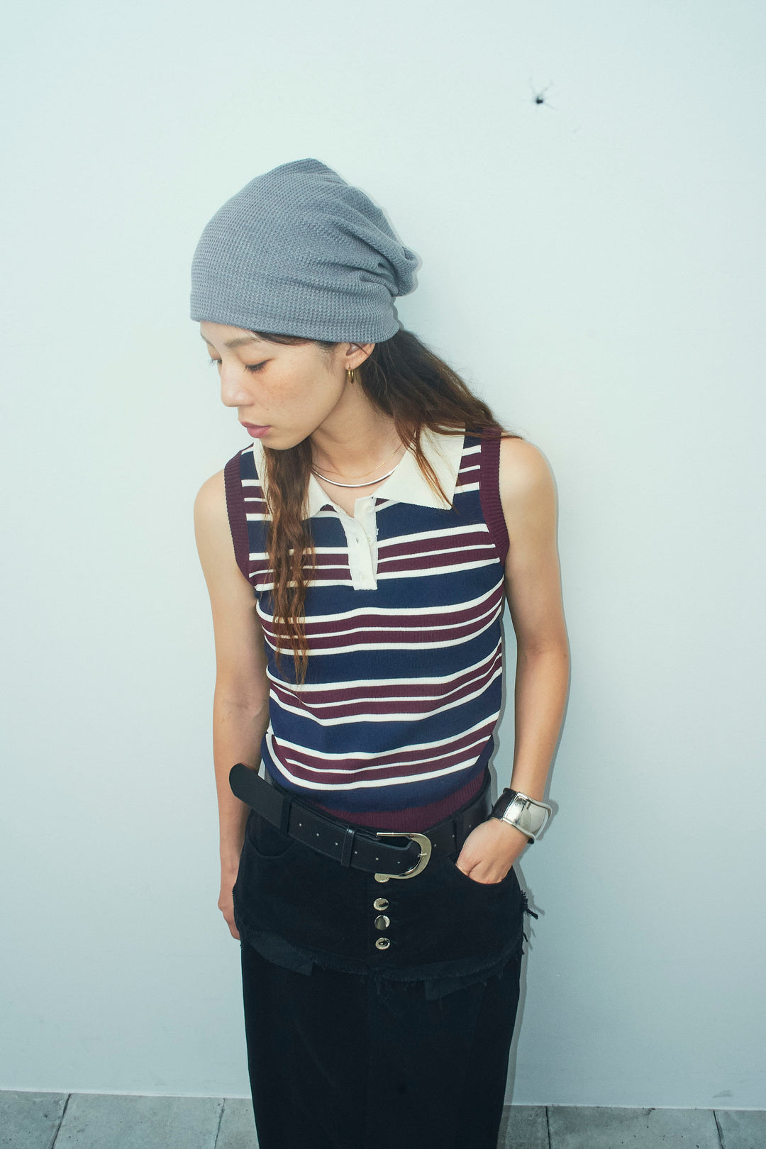[予約]セルフカットリブヘンリーネックノースリーブトップス