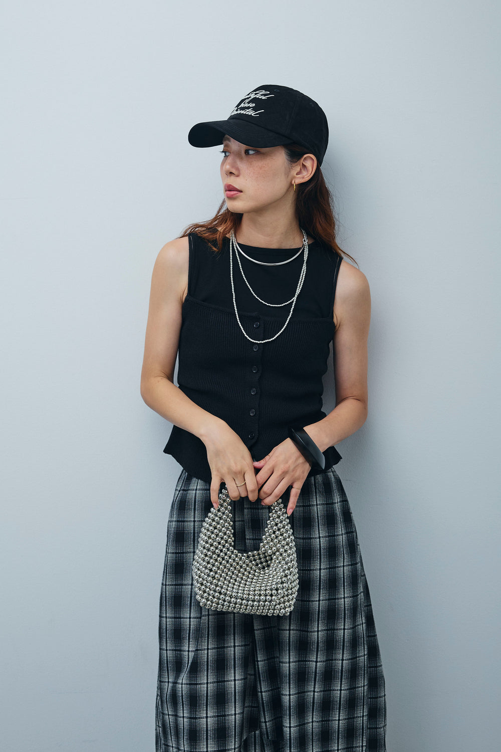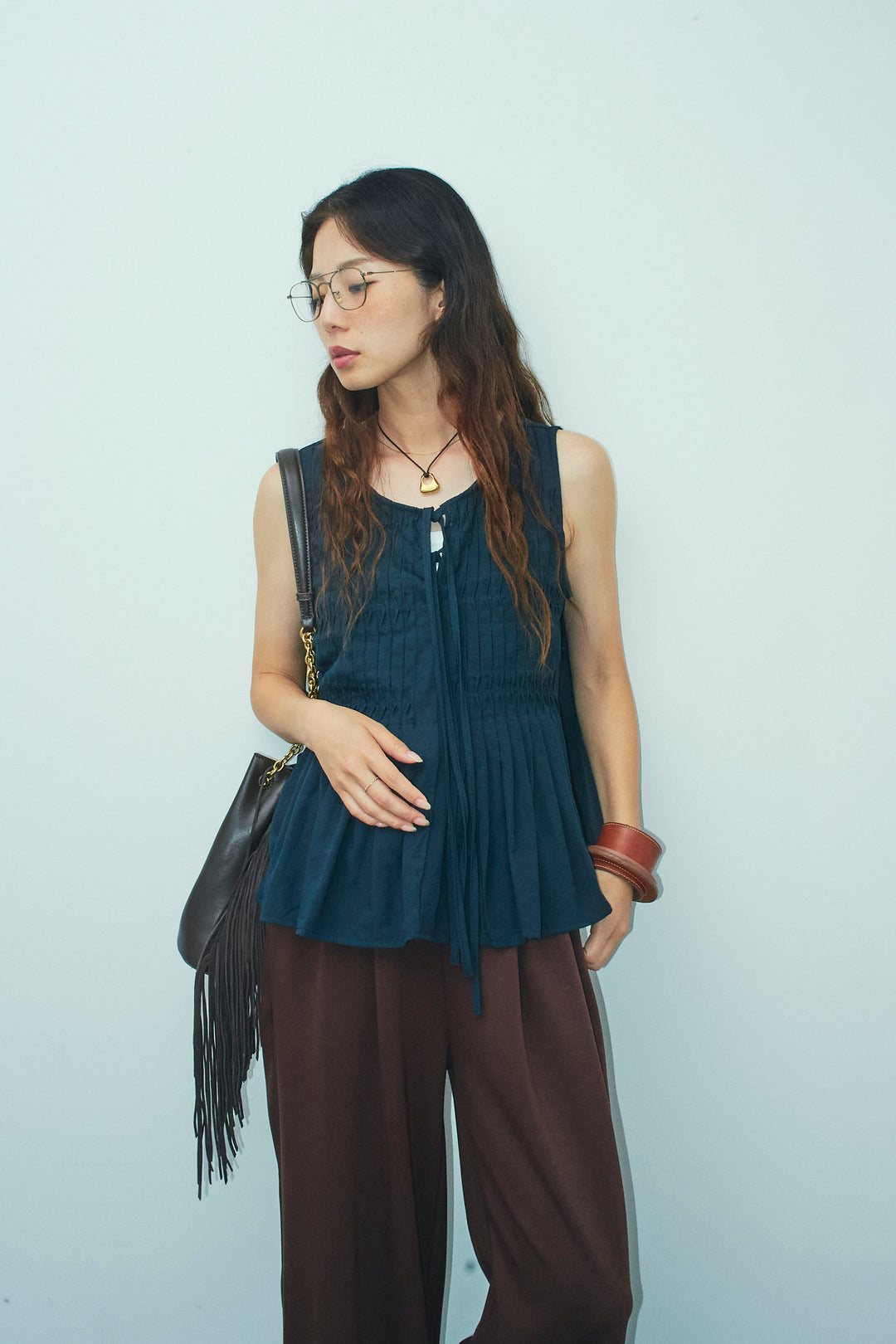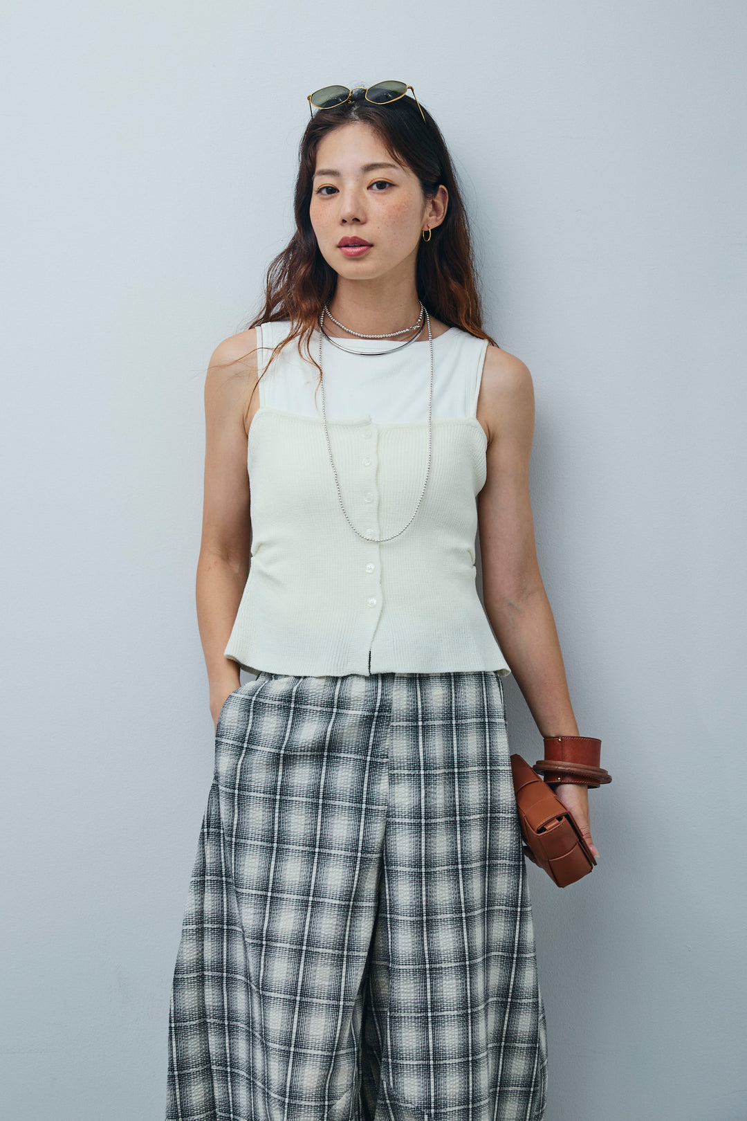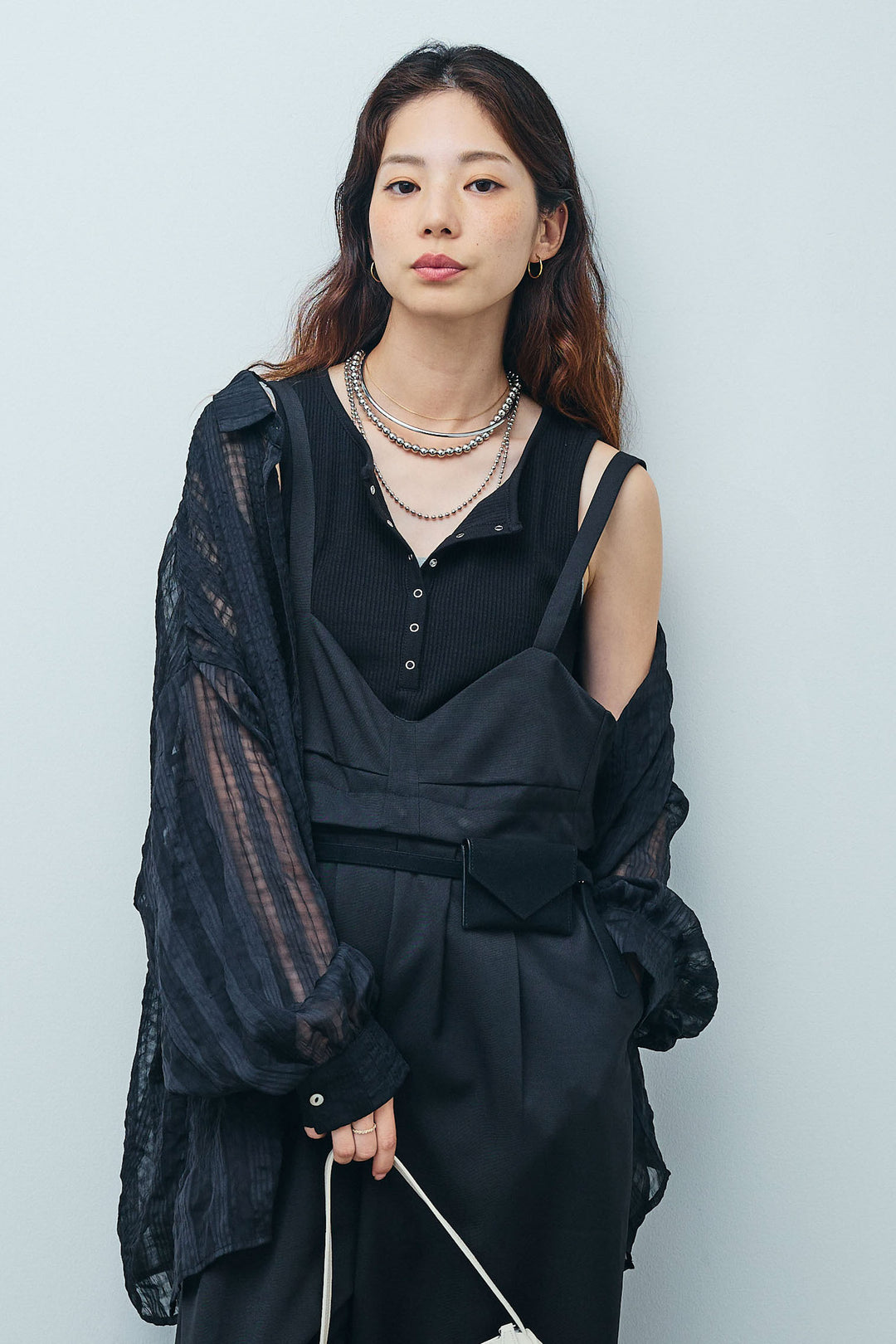 [予約]セルフカットリブヘンリーネックノースリーブトップス