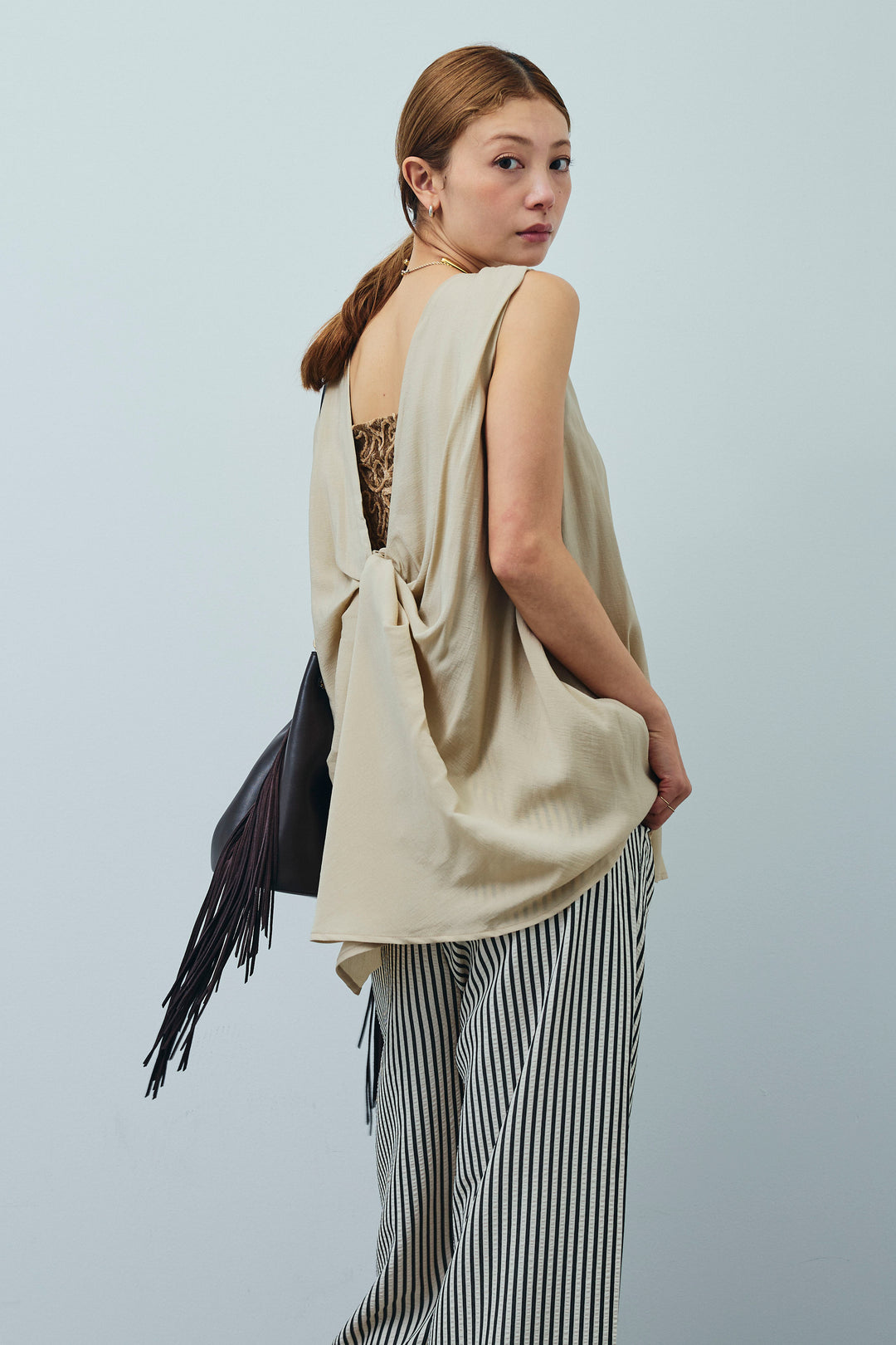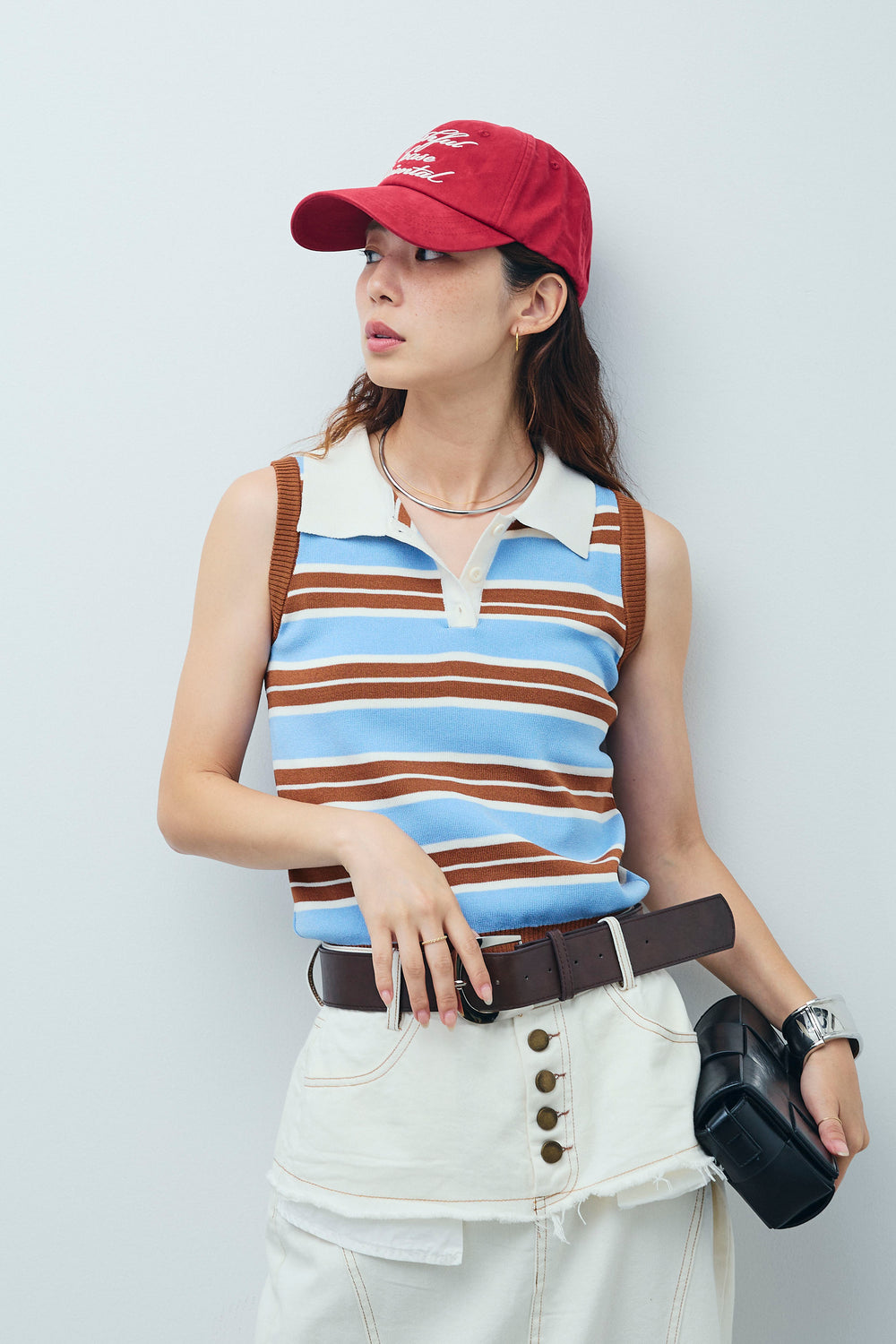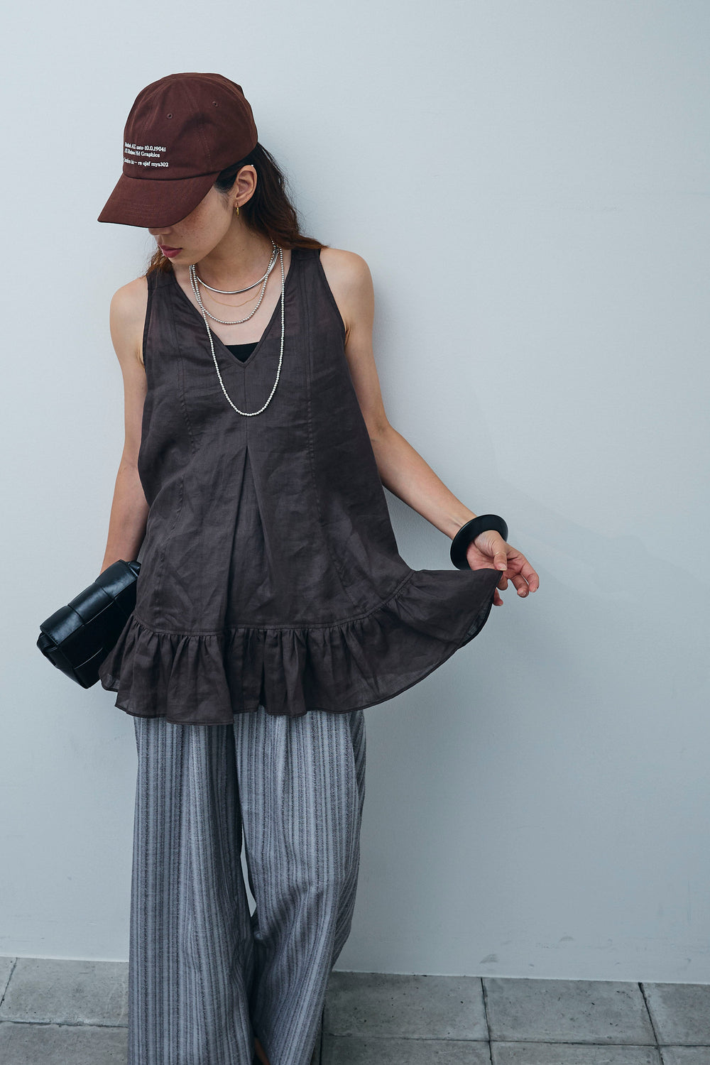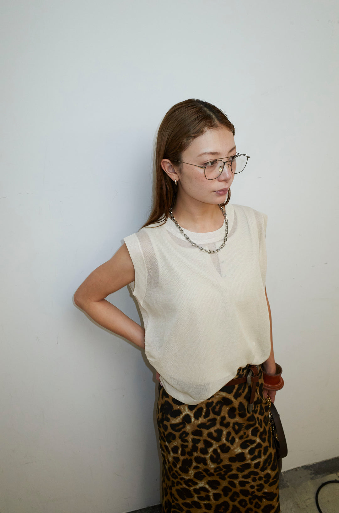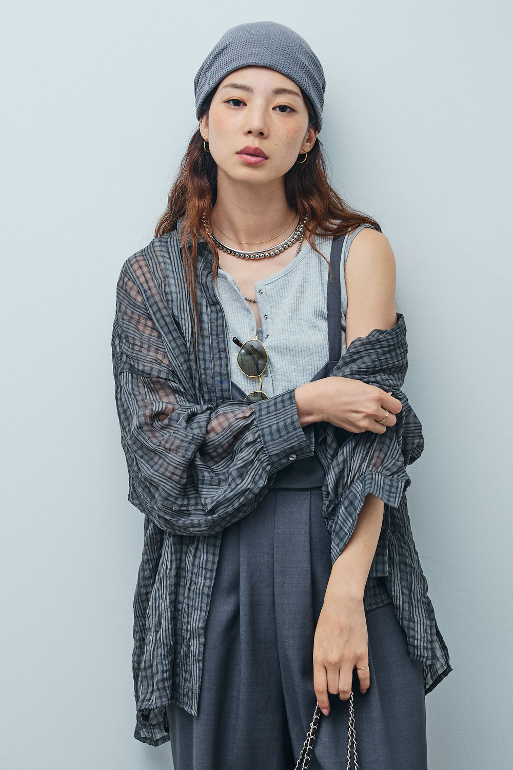 [予約]セルフカットリブヘンリーネックノースリーブトップス