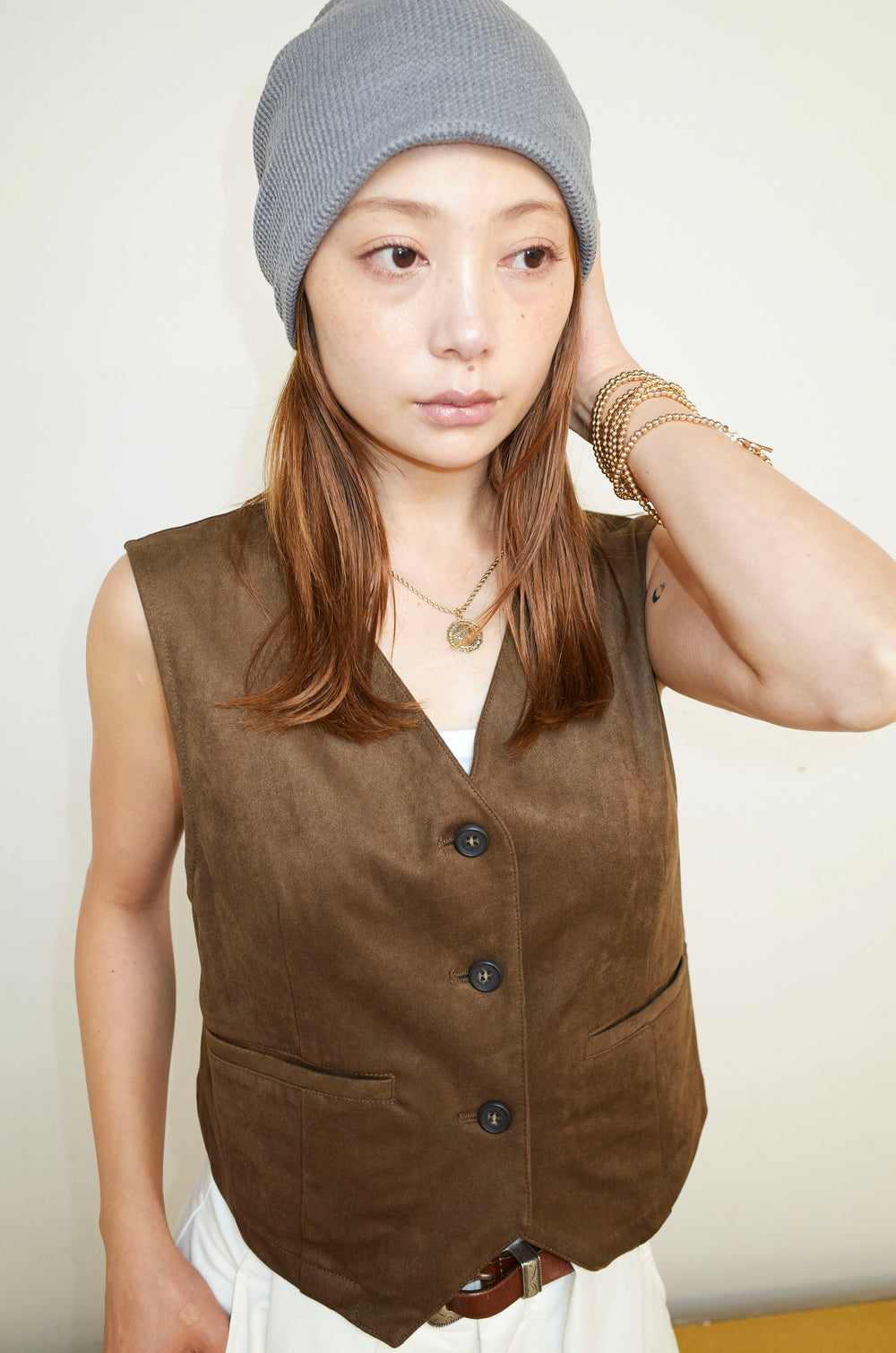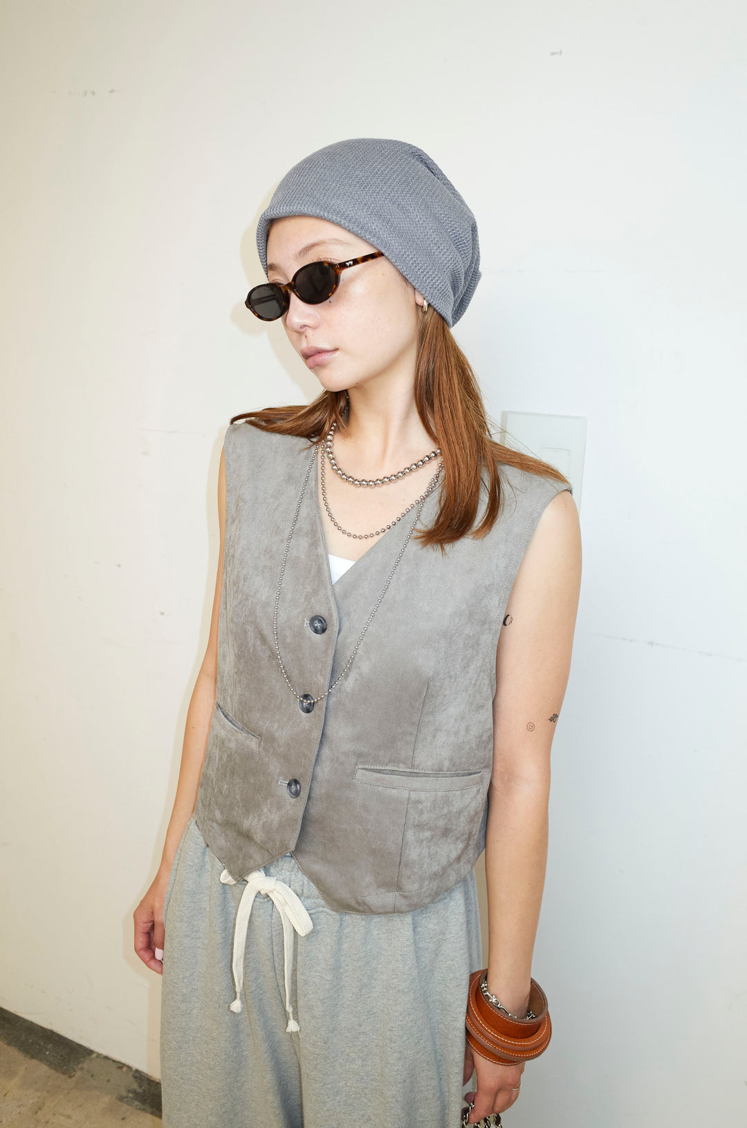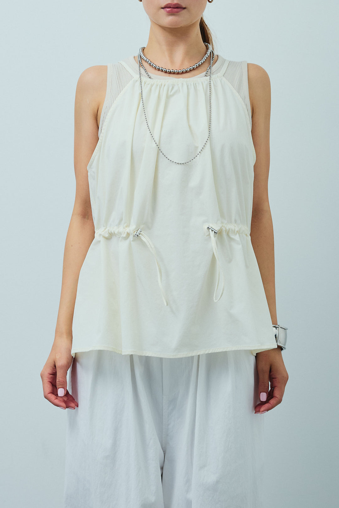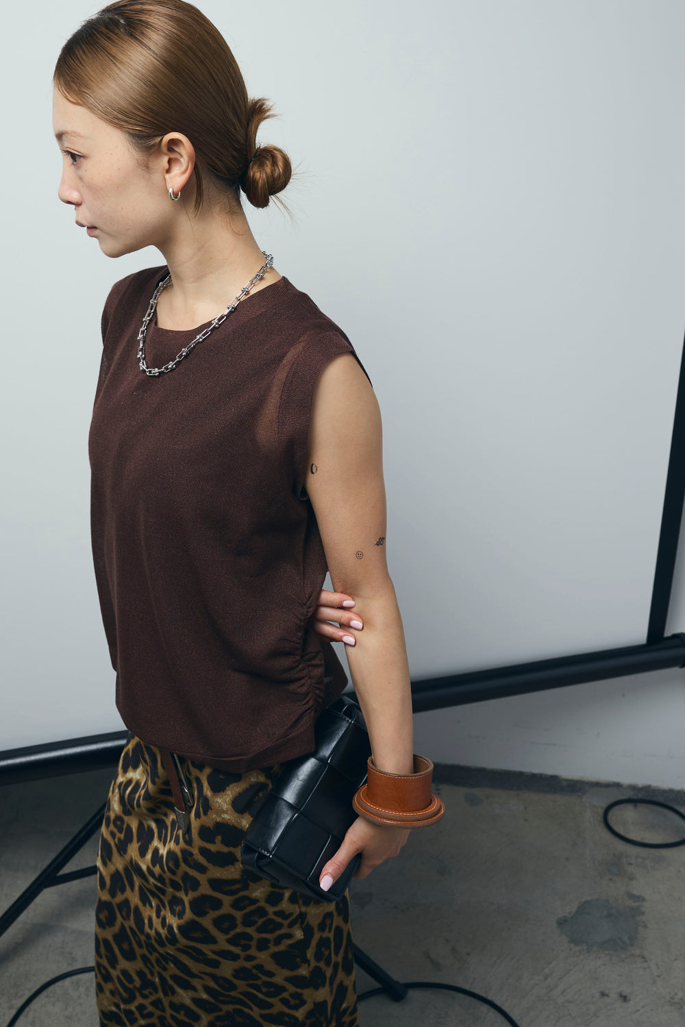 [予約]セルフカットリブヘンリーネックノースリーブトップス