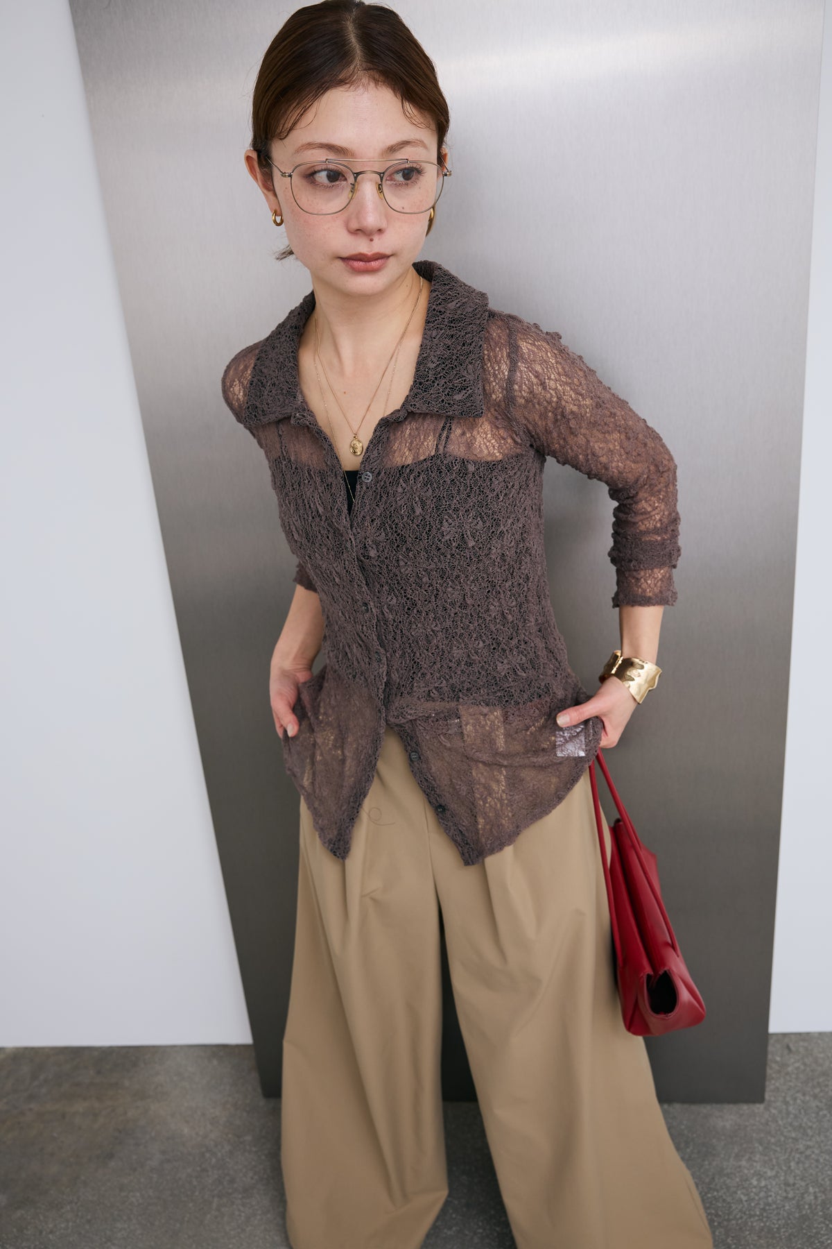 [予約]シアーレース襟付きカーデを含んだコーデセット商品を探す↓