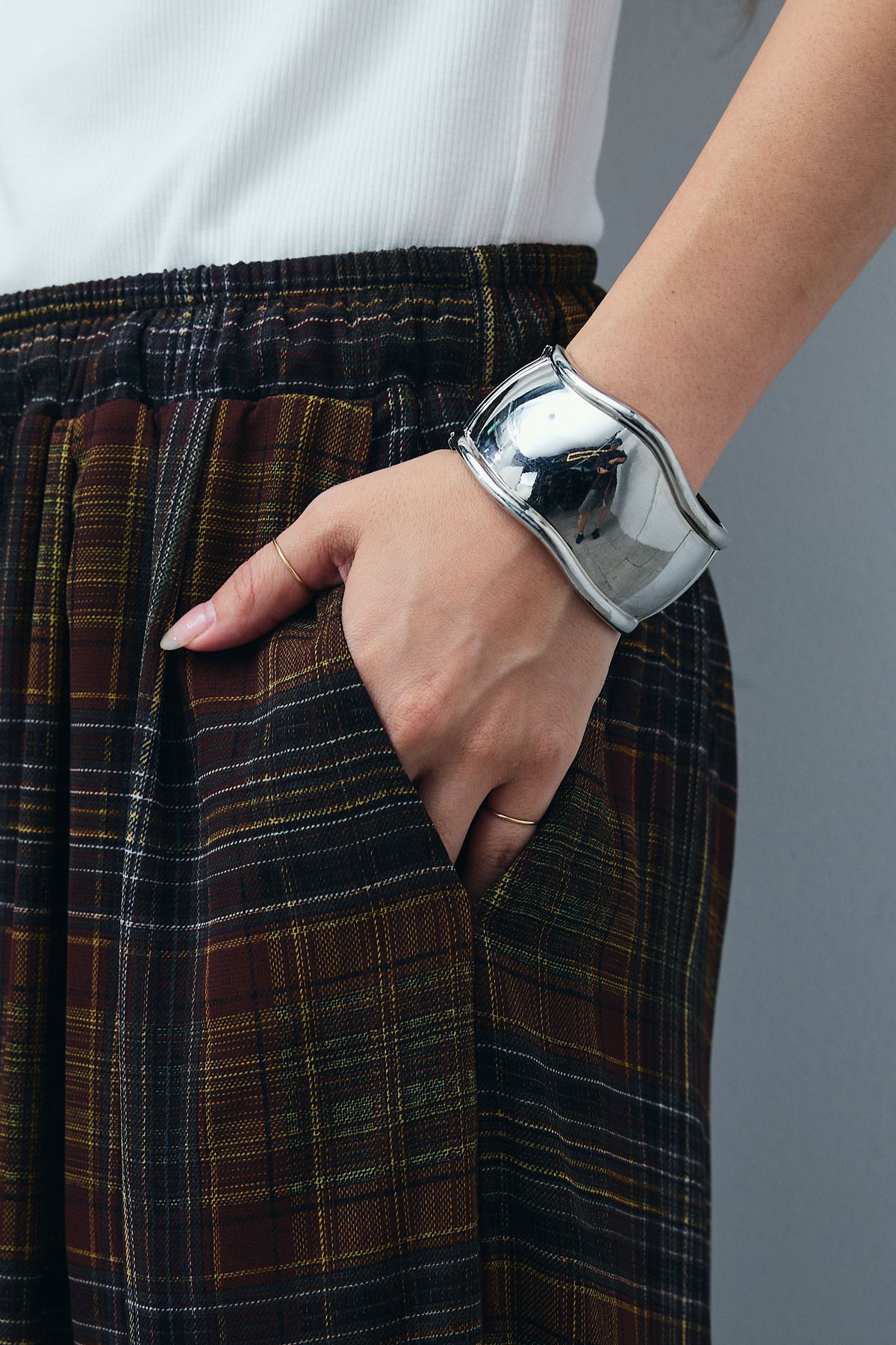 軽やかな透け感が魅力のシアーチェック素材を使用したスーパーワイドパンツ。歩くたびにふわりと揺れるシルエットが、涼しげで抜け感のあるスタイリングを演出。ギャザーウエストでリラックス感がありながらも、縦ラインを強調するプリーツ風のデザインでスッキリとした印象に。シンプルなトップスと合わせるだけで存在感のある着こなしが完成します。夏のデイリースタイルにぴったりな一本です。