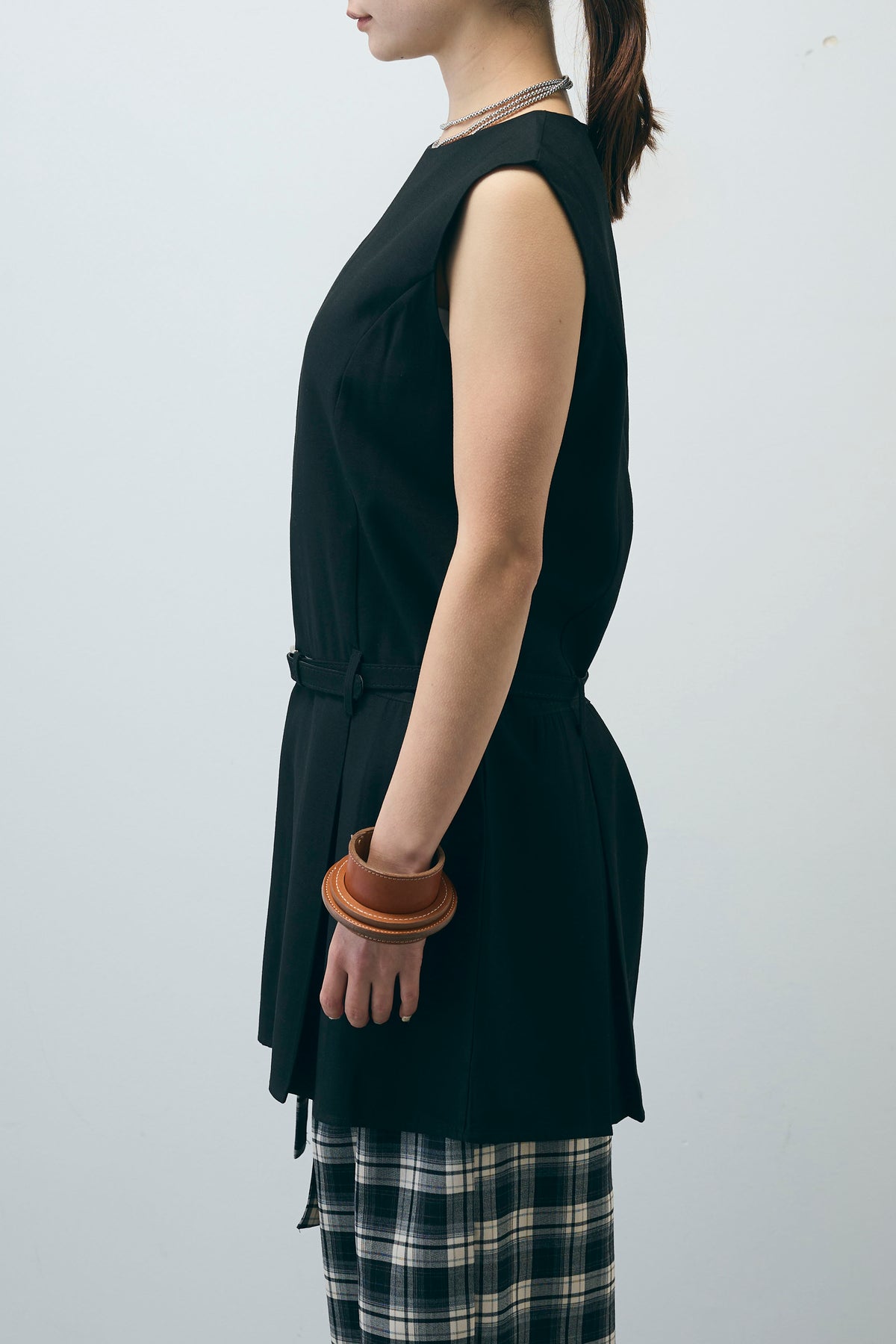 すっきりとしたIラインシルエットに、サイドプリーツがアクセントを添えるチュニック。付属の細ベルトでウエストマークすれば、より洗練された印象に。パンツ合わせで旬なレイヤードも楽しめる一枚。