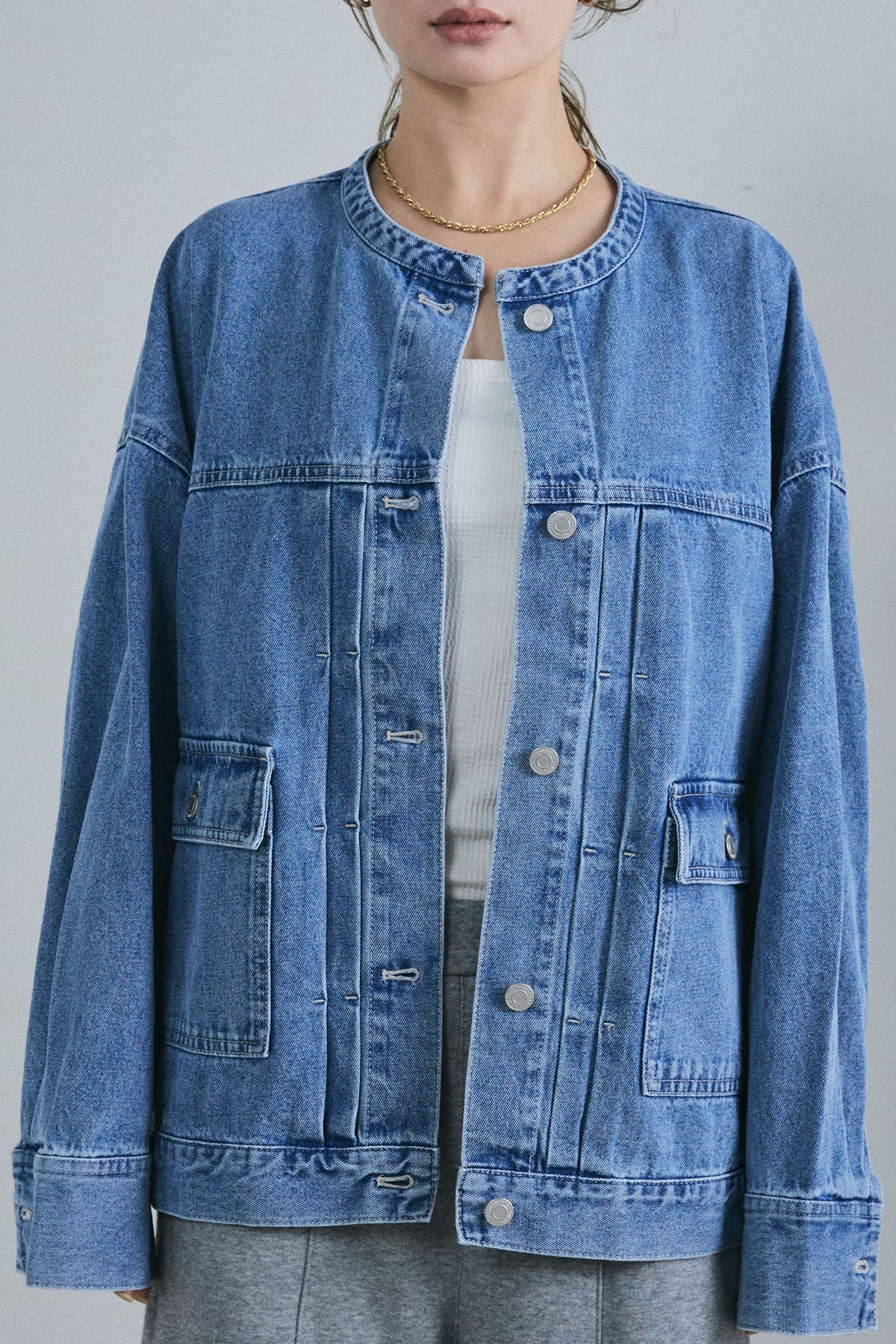 [予約]オーバーサイズノーカラーデニムJK