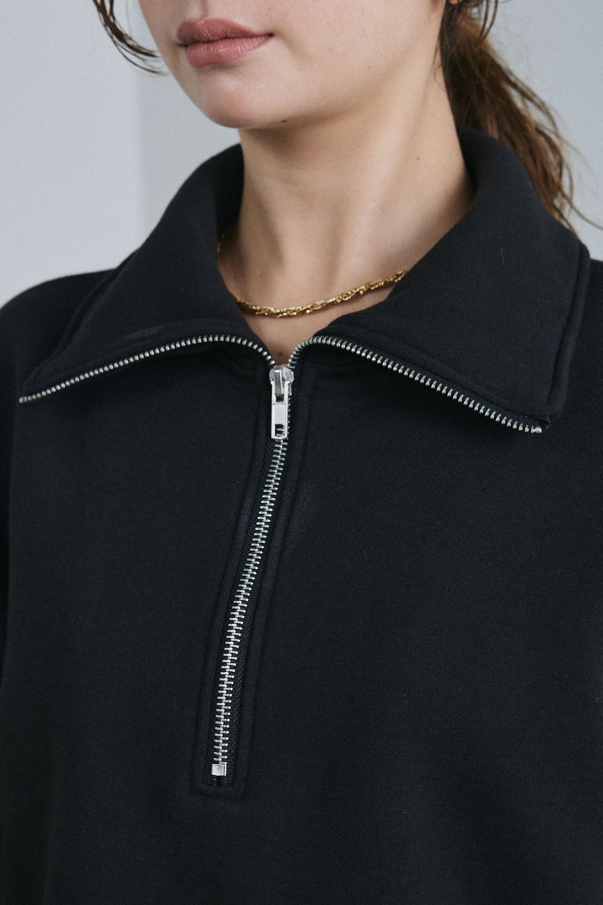 程よくゆとりのあるシルエットとハーフジップデザインが魅力の裏起毛トップス。柔らかな裏起毛素材で暖かく、リラックス感のある着心地です。ハイネック仕様で首元まで防寒でき、ファスナーを開けると抜け感のあるスタイルに。デニムやスカートなど幅広いボトムと好相性の万能アイテムです。